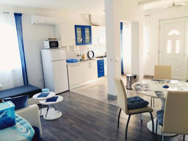 Turistična taksa je vključena v ceno.Satelitska TV sprejem in brez WI-FI internet signal, v vseh apartmajih. Na mirni lokaciji, le nekaj kilometrov od avtoceste, kulturno središče mesta Šibenika in nacionalnega parka \ Krka \ in \ Kornati \. Možnost žar s klimo. Pribl. 4 km od apartmaja se nahaja Plaza Banj, Šibenik, Makari - restavracija