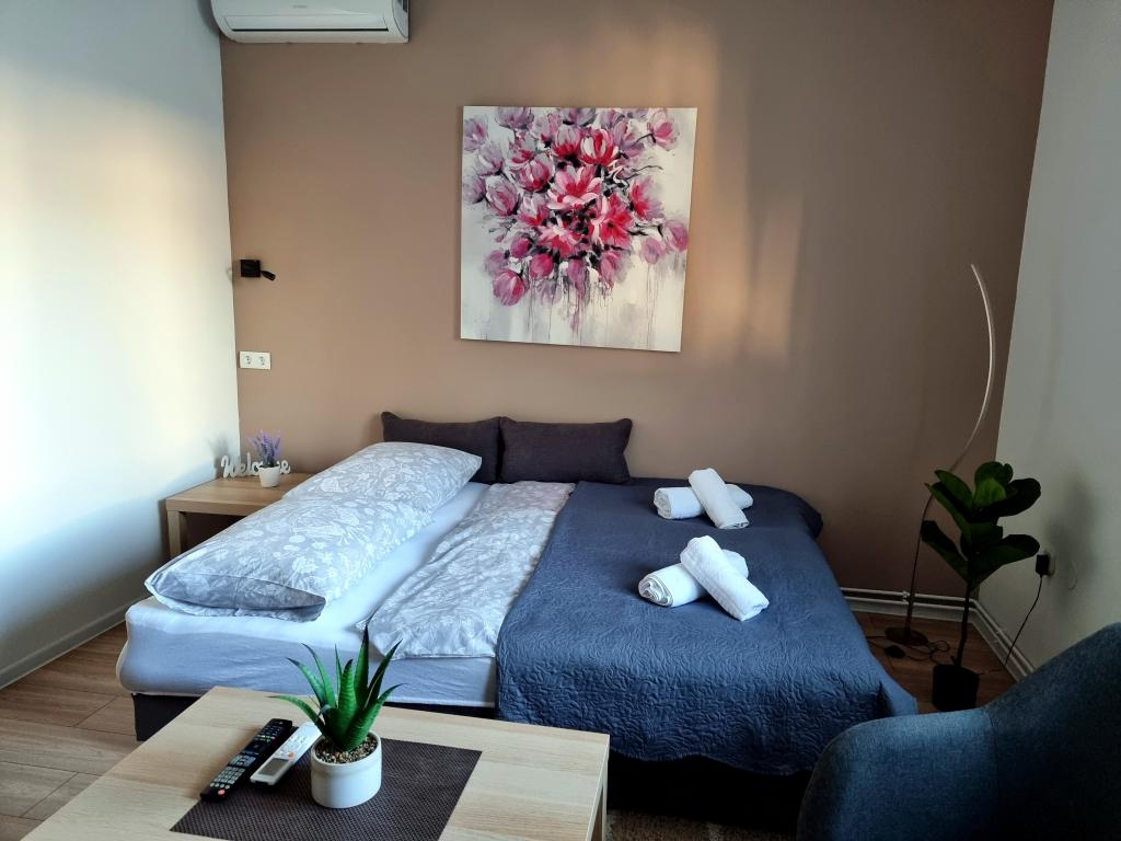 Privatna namestitev Corina, moderno in udobno opremljene sobe in apartma v mirnem mestu Bilje, predmestju Osijeka, 3 km od naravnega parka Kopački rit in 5 km od mesta Osijek (Tvrđe). lahko uživajo v blagodatih narave in se prebujajo ob vonju svežega cvetja in žvrgolenju ptic. Soba (dvoposteljna 23 m2) Značilnosti sobe: - pogled na vrt - SMART TV 126 cm (internetna televizija, Netflix) - klima - likalnik - jedilna miza z dvema stoloma - centralno ogrevanje - mreža proti komarjem - garderobna omara - kopalnica s tušem in WC-jem - sušilec za lase - brezplačen toaletni pribor - posteljnina - brezplačen wi-fi internet. Triposteljna soba (25 m2) Značilnosti sobe: - pogled na vrt - SMART TV 110 cm (internet televizija, Netflix) - klima - likalnik - jedilna miza z dvema stoloma - centralno ogrevanje - mreža proti komarjem - kopalnica s tušem in WC Apartma 46 M2 vrt pogled - SMART TV 120 cm (internet televizija-dnevna soba) Smart TV 126 cm spalnica pralni stroj