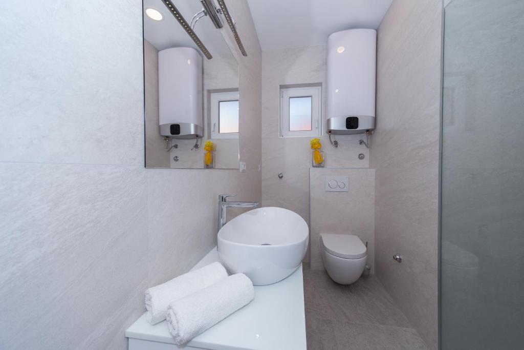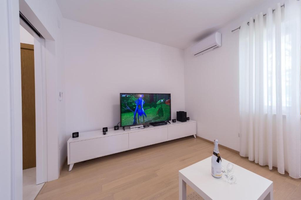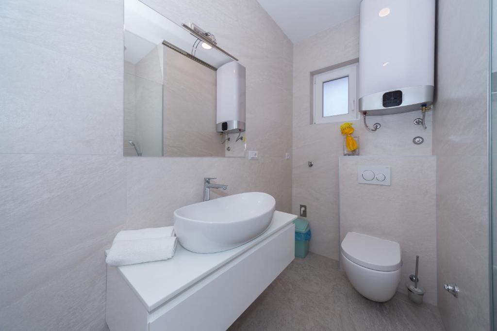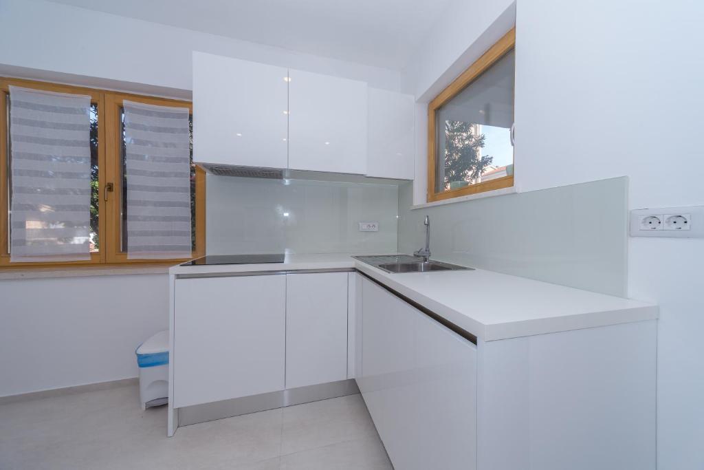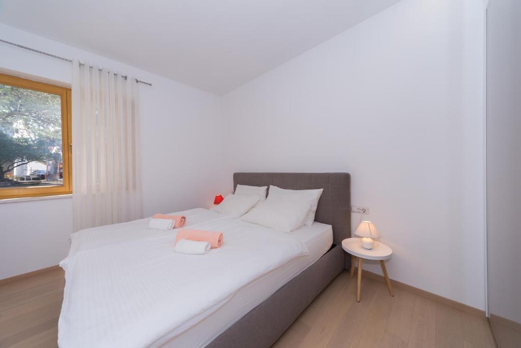Na novo urejen in moderno opremljen apartma 2 minuti hoje do plaže Dražice, ki ima Modro zastavo, kar pomeni čistost morja in plaže. Apartma sestoji iz 2 sob kraljica postelja 2m x 2m in raztegljiv kavč za 2 osebi. Parkiranje je zagotovljeno poleg stanovanja, v vsaki sobi je LCD televizor in tudi v dnevni sobi je wi-fi brezplačen in obstaja možnost uporabe Play postaje 4 z več igrami. V apartmaju sta tudi 2 klimatski napravi in so vključene v ceno stanovanja. Če je več kot 6 oseb, obstaja možnost nastanitve v bližini Apartmaji v kampu "Mia" in v kampu Diana