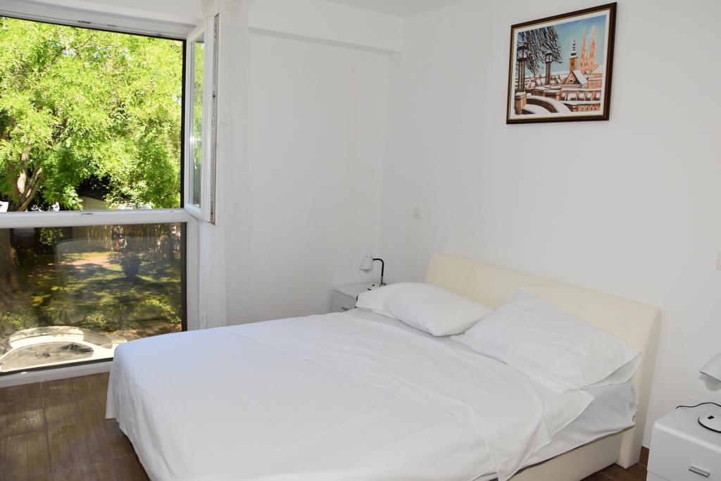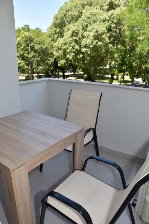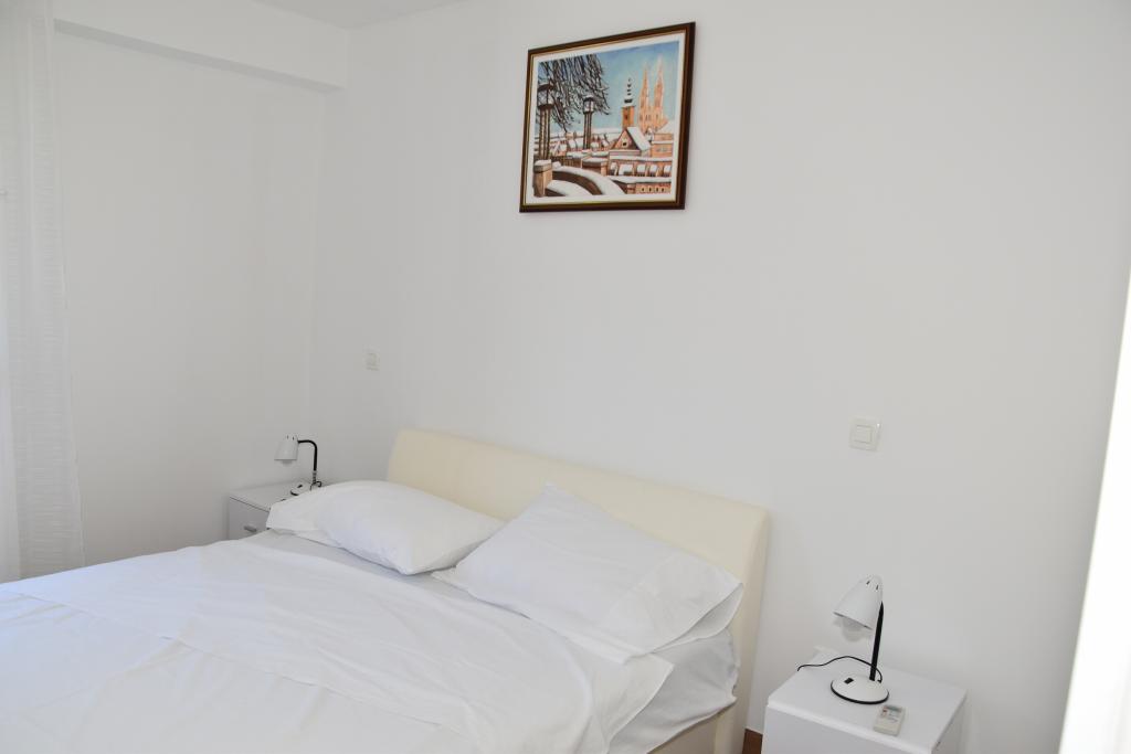 Apartma Center, 60 m2, se nahaja v samem centru Biograda na Moru v prvem nadstropju stanovanjske stavbe. Glede na to, da je v samem centru, so na voljo številni objekti, kot so: riva, plaže, restavracije, kavarne, zabaviščni park, muzej in drugi objekti v bližini. Apartma je sestavljen iz ločene sobe z zakonsko posteljo, ki je ločeno klimatizirana, ločene druge sobe z ležiščem, kopalnice, kuhinje, hodnika, balkona, klimatizirane dnevne sobe z raztegljivim kavčem, ki je primerno za še dve odrasli osebi in v primeru manjšega otroka do največ 6 oseb skupaj v apartmaju. Apartma je običajno za 4 osebe, ker pa ima raztegljiv kavč, lahko sprejme do 6 oseb. Z balkona se odpira čudovit razgled na bližnji stoletni park nasproti avtobusne postaje. Minimalno število nočitev je 3 ali več, odvisno od izbire gostov.