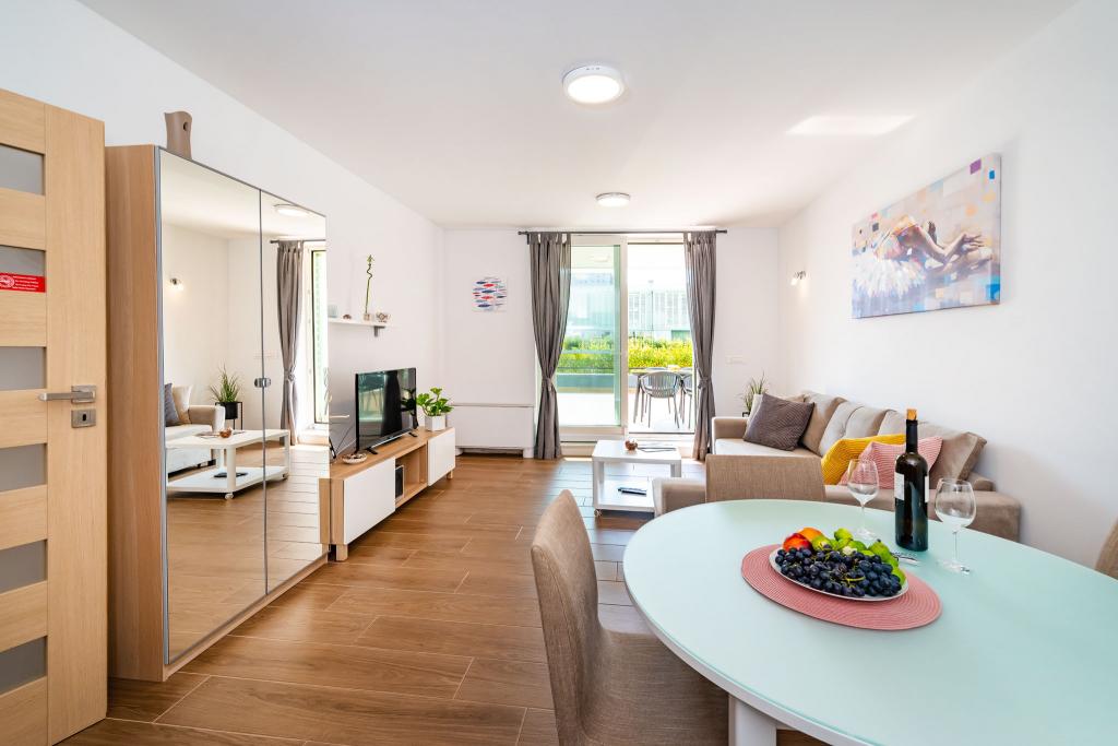 Apartma Luni se nahaja v drugem nadstropju trgovskega centra Bure Centar v Biogradu na Moru. V sklopu Bure Centra je supermarket, trgovina, restavracija in kavarne. Apartma je ločen od hrupnega hrupa, ima 50m2 bivalne površine in 47m2 terase, kjer lahko uživate. Ima dnevno sobo s kuhinjo, kopalnico, spalnico, parkirno mesto pod video nadzorom. Vključuje brezplačen brezžični internet, TV, klimatsko napravo in opremo za peko na žaru.