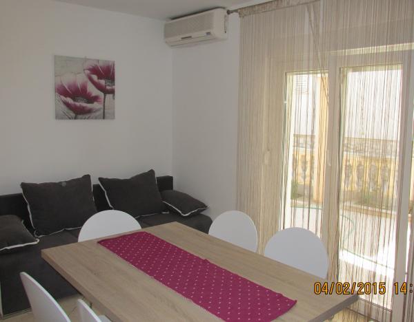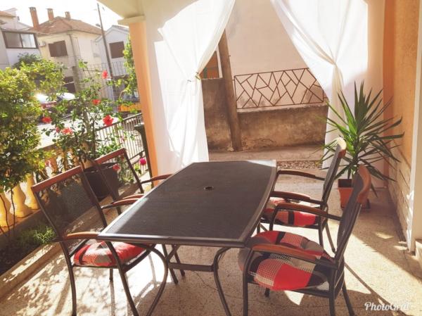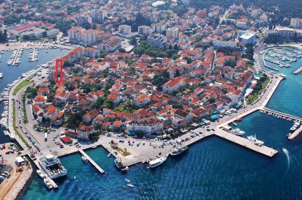 Popolnoma opremljeno stanovanje (2 spalnici, kopalnica, jedilnica), se nahaja v starem mestnem jedru. Čeprav se nahaja v centru mesta, apartma se nahaja v položaju, ki zagotavlja mir skozi ves dan in noč. V bližini hiše je urbana waterfront, tržno mesto, številne restavracije, pizzerije in restavracije. Tudi na 10 minut hoje od plaže, ki je bil nagrajen z Modro zastavo. Apartma je zelo privlačna za ljubitelje navtičnega turizma saj se nahaja na oddaljenosti 100 metrov od marine. Z uporabniki stanovanj imajo na razpolago notranji parkirišče za 2 avtomobila, žarom in teraso. Apartma je privlačna zaradi dejstva, da kupci lahko parkirate svoj avto na varnem mestu in ga zaradi lege stanovanja nimate uporabljati celotno obdobje počitka, ki je idealen za preprečevanje težav s prometom in plačilo parkiranja. Uporaba Wi-Fi in klimatsko napravo je brezplačna.