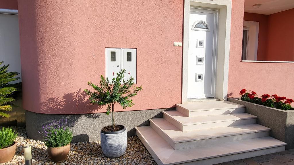 Nova moderna stanovanja, ki se nahajajo v mirnem delu Biograda. Imajo ločen vhod in se nahajajo v prvem nadstropju hiše. Opremljeni so s klimatsko napravo, satelitsko televizijo in brezžičnim internetom. Od glavne peščene plaže Soline so oddaljeni 500 m.