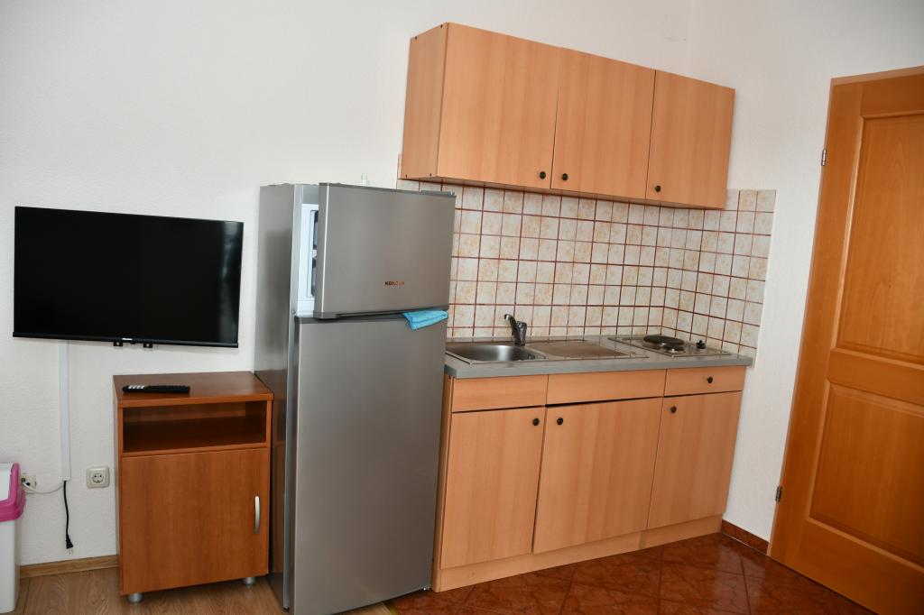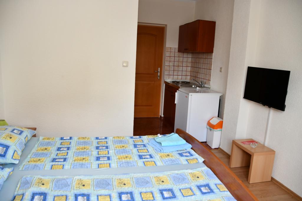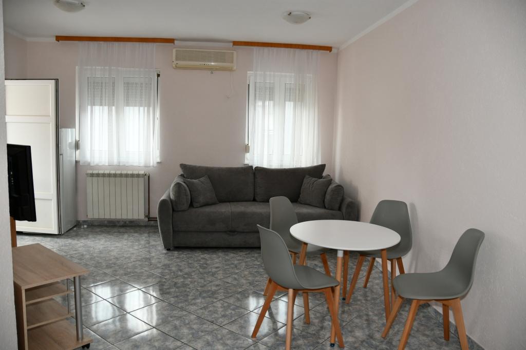 Apartmaji se nahajajo v mirnem delu mesta, 10 minut hoje od najbližje plaže, restavracije, trgovine. Dvorišče in terase so urejene za druženje, zunanja kuhinja/žar. Apartmaji so preprosto opremljeni, s klimatsko napravo, TV-jem, brezžičnim internetom. Vsak apartma je sestavljen iz spalnice z lastno kopalnico, dnevne sobe, popolnoma opremljene kuhinje in balkona za sprostitev. Sprejeli vas bodo prijazni gostitelji, ki vas bodo sprejeli z odprtimi rokami in vam bodo na voljo za vse vaše želje ali vprašanja. Vaši gostitelji tekoče govorijo nemško in hrvaško. Naša ponudba bo vaše počitnice spremenila v nepozabno uživanje v pristnem mediteranskem vzdušju. Dobrodošli!