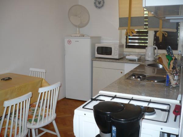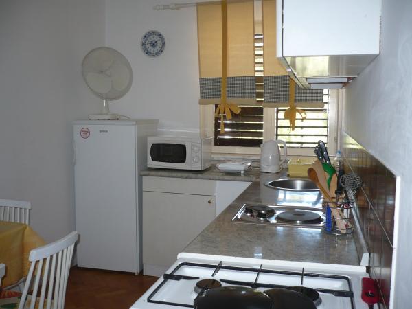 . Objekt se nahaja v mirnem delu Biograda. Apartma se nahaja 5 minut hoje do plaže Bošana in 7 minut hoje do centra. . Terasa se nahaja na dvorišču z možnostjo žara. Cena vključuje posteljnino, brisače, odeje, porabo vode, internet, klimatska naprava, parkirno mesto. Kuhinja ima oskrbe s plinom, pečica, mikrovalovna pečica, aparat za kavo, hladilnik, so tv. V kopalnici je kad. tuš in WC. 2 v 4, WC je ločeno.