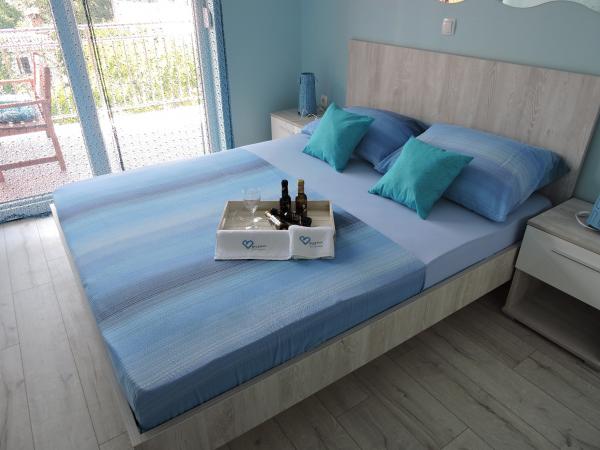 Turistična taksa je vključena v ceno.Poleg tega objekta je v ponudbi tudi čoln; 5 metrov dolg z živosrebrnim motorjem s 5 KM. Cena najema 280 evrov na teden. Apartmaji lahko uporabljajo poletno kuhinjo s pralnim strojem (doplačilo), pečico in kaminom z žarom.
