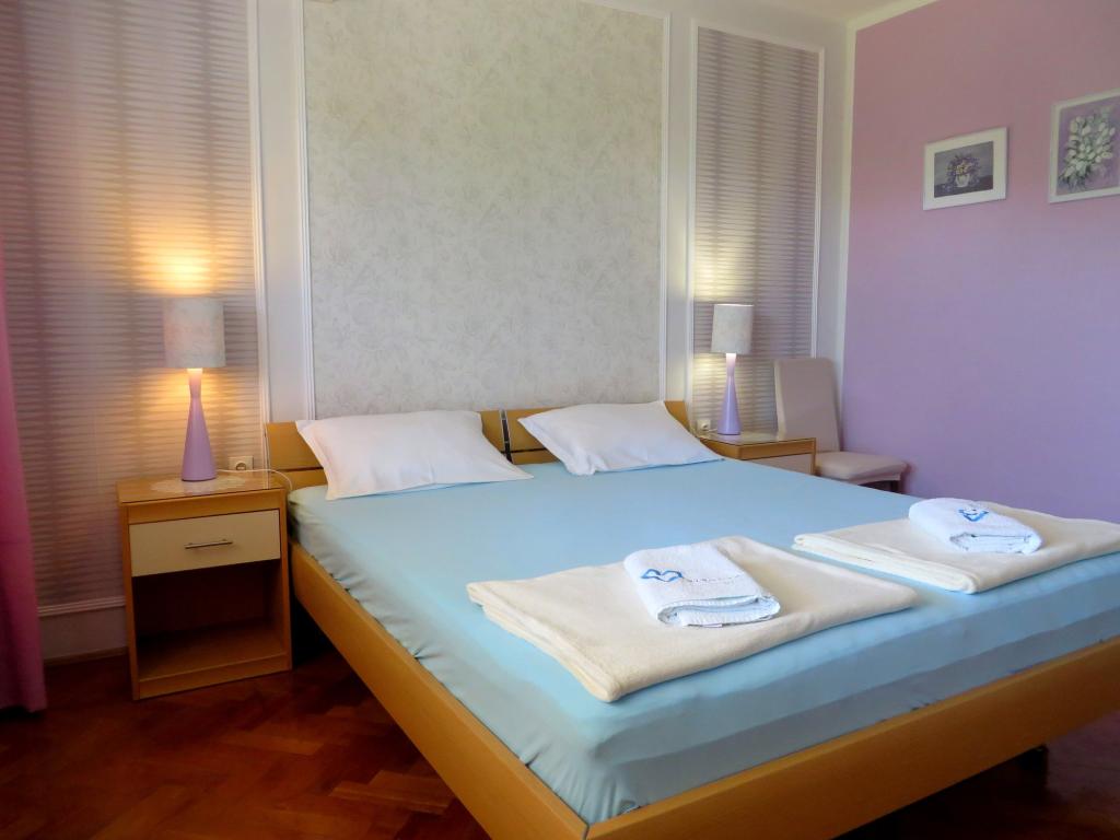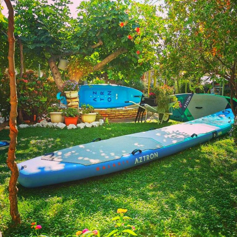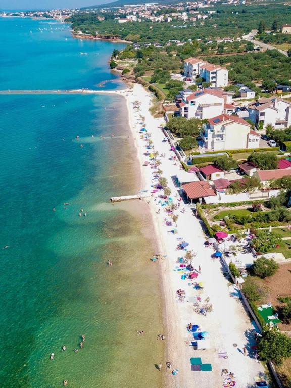 Beach apartmaji Roza se nahajajo v prvi vrsti do plaže Bošana na dvorišču, polnem zelenja, v bližini vseh vsebin. Trgovine, restavracije in bari se nahajajo v neposredni bližini, center mesta je oddaljen manj kot 10 minut hoje. Varovano parkirišče na dvorišču za standardna vozila.