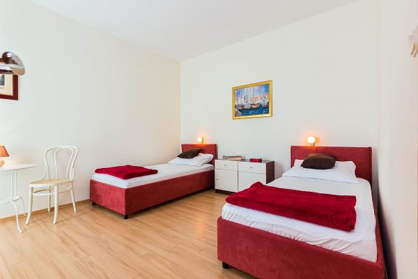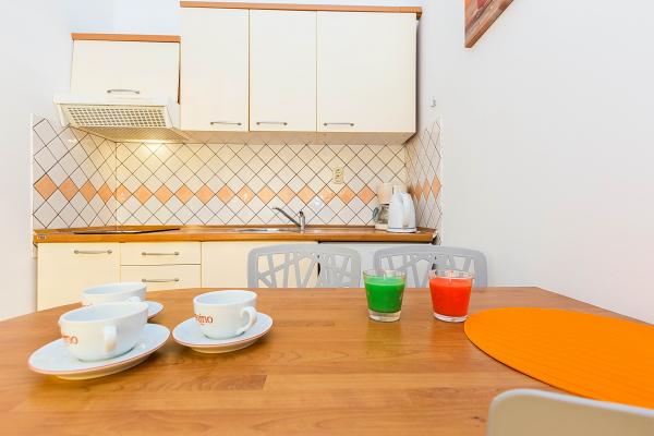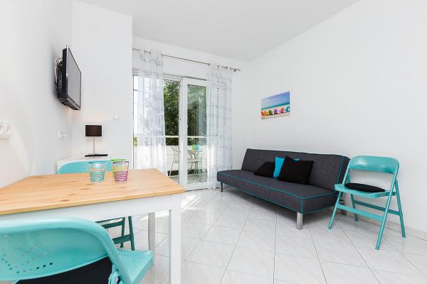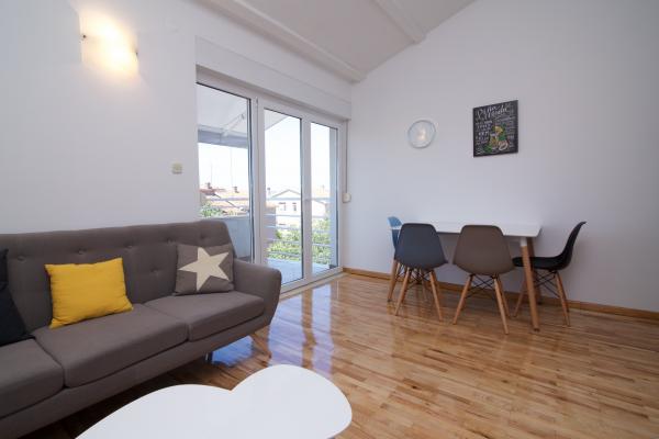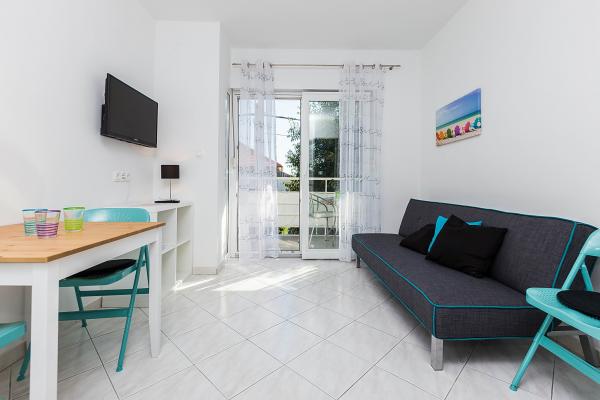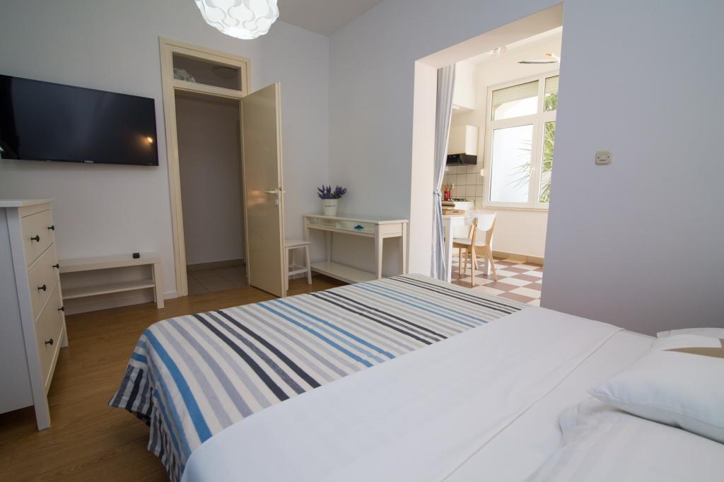 Apartmaji se nahajajo v družinski hiši, v kateri imajo stalno prebivališče gostitelji skozi vse leto. Moderno opremljene z zasebnimi balkoni ali teraso z lepim razgledom, ločen vhod in parkirni prostor, ki je brez kakršnih koli doplačil. Za goste, v katerih ni pralni stroj, obstaja majhna perila. . Ulica, kjer se nahaja hiša je tiho in kratek sprehod od centra mesta, trgovine, restavracije, plaže, ambulante in druge zmogljivosti, potrebne za udobno bivanje. Približno 5 do 10 minut hoje. Gostitelji vam bodo z veseljem pomagali v primerih nesreč, če se zgodi, in zagotavljajo veliko potrebnih informacij o mestu in njegovi okolici. Govorijo angleško, nemško in italijansko. Apartmaji imajo wi-fi, ki je brezplačno. Gostitelji so srečni prihod gostov, ki obiščejo te apartmaje, za več kot 20 let. Mnogi od njih vsako leto. Vsa družina se trudi ostati v hiši vse ostaja prijeten spomin. Vsi so dobrodošli.