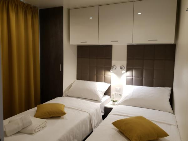 Preberite več Namestitvene enotePlačilo se lahko opravi z vplačilom žiro računa ali gotovine v nastanitvi. Potrebno je predplačilo v višini 30% skupne cene nastanitve. Prihod in registracija v kampu Dalmaris je od 15.00 do 21.00, odhod iz 06.00h - 10.00h. Škoda v višini 100 EUR (približno 742,68 HRK) se plača ob prihodu. Celoten znesek depozita vam bomo vrnili, ko boste zapustili objekt, če objekt ni poškodovan.