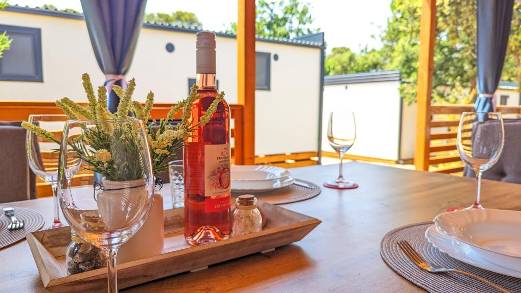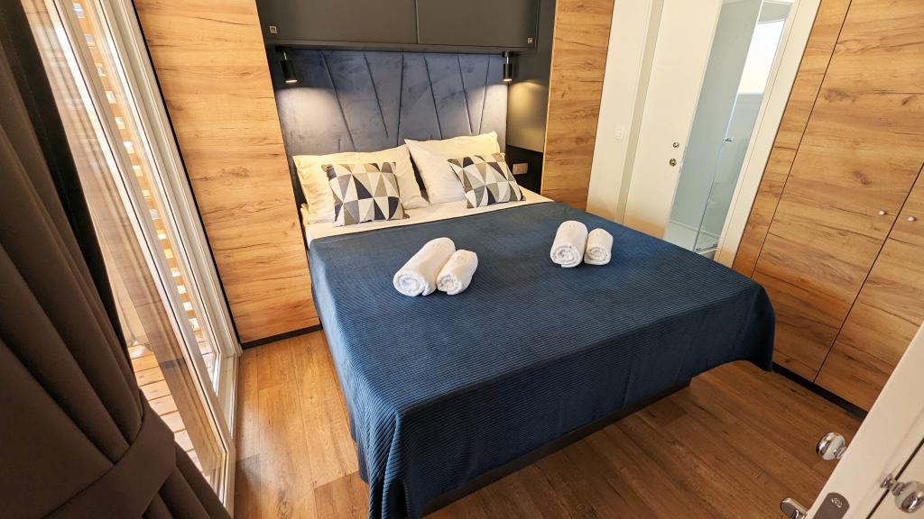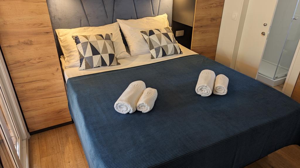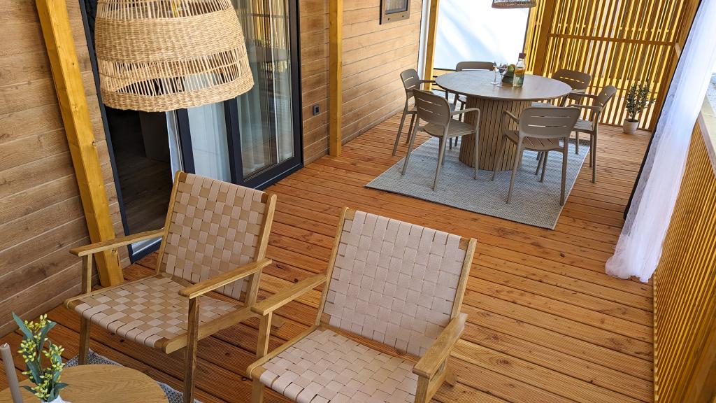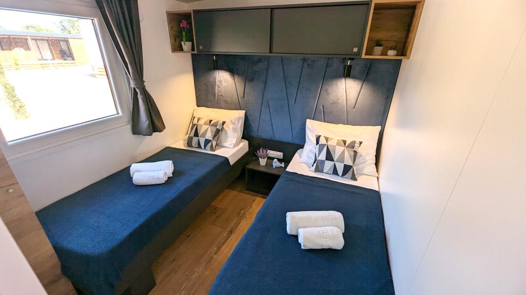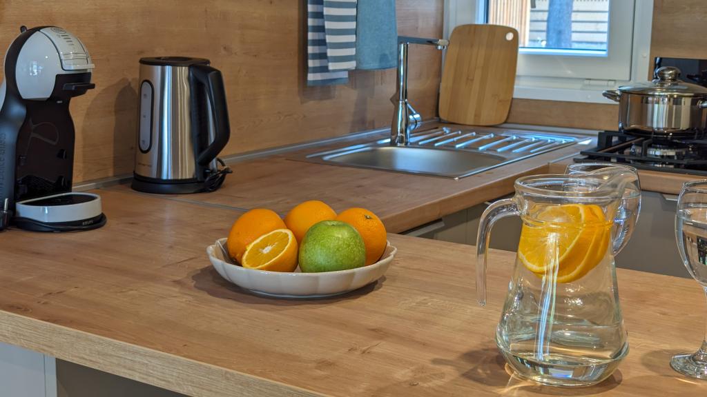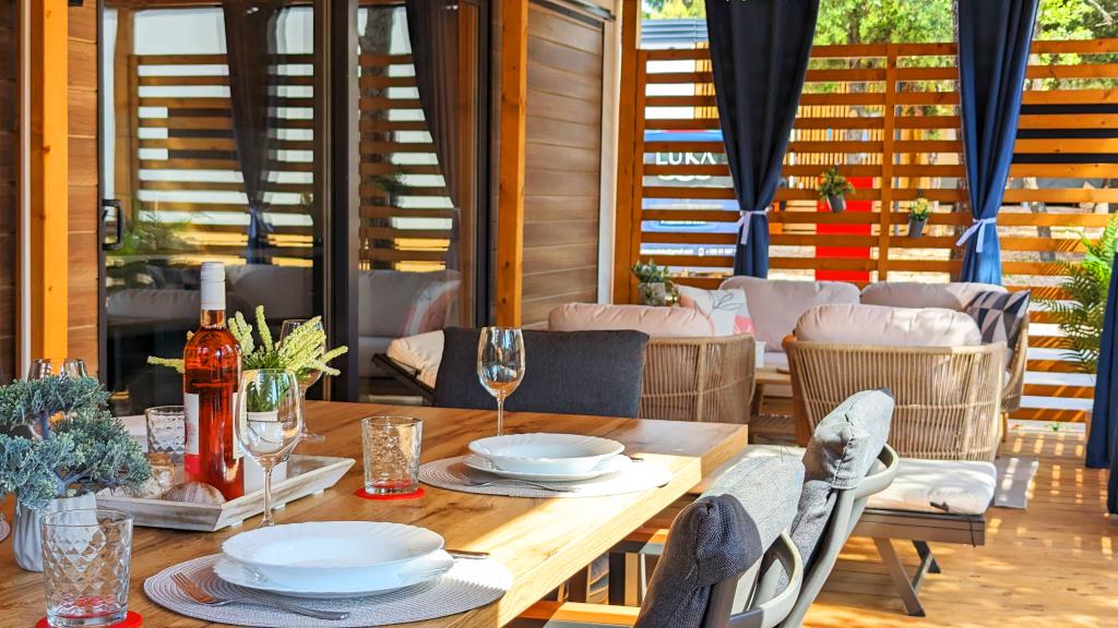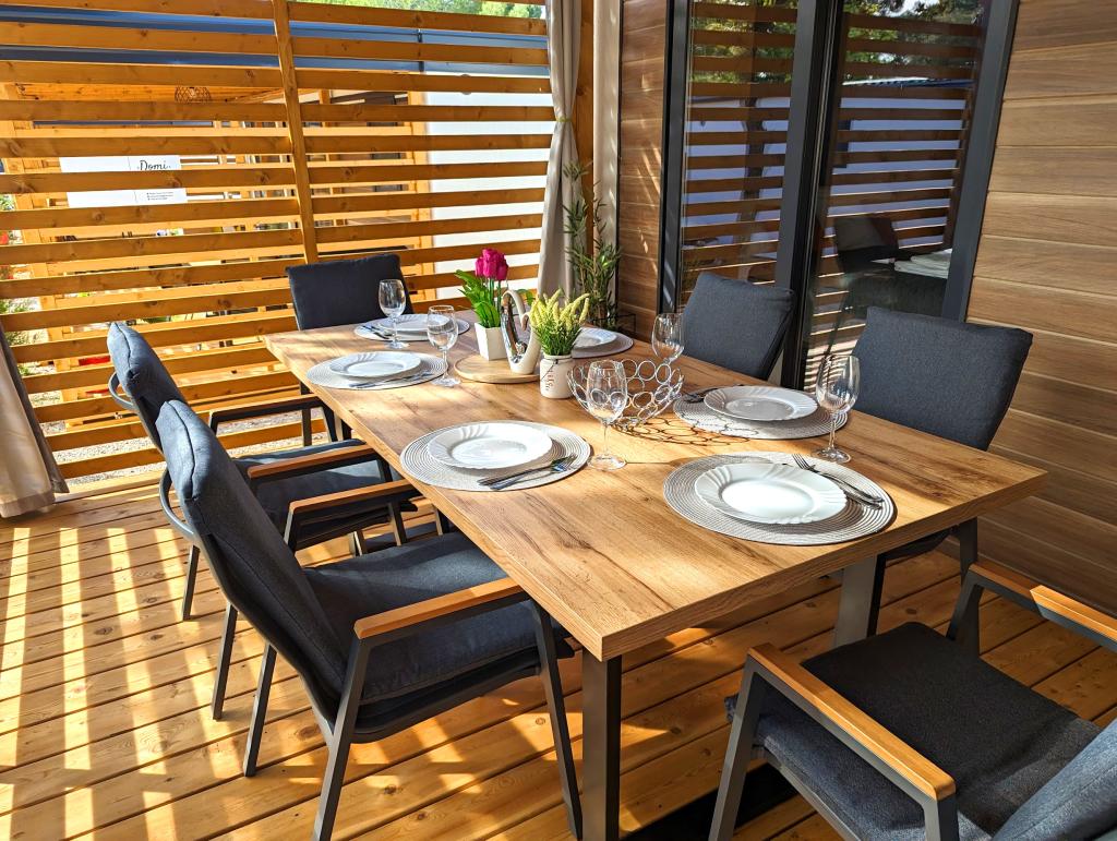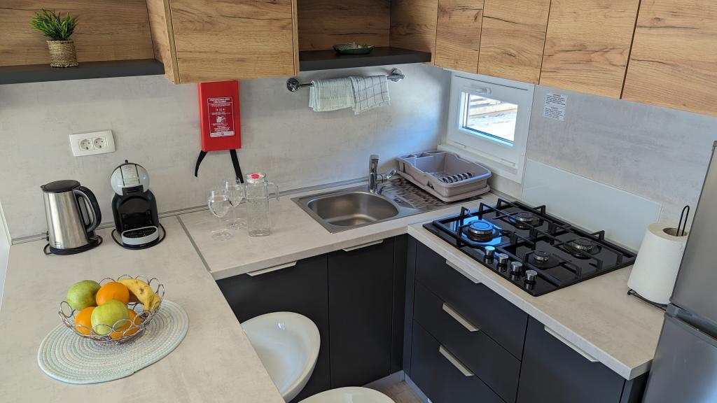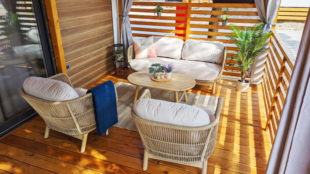 Uživajte v naravi in udobju: mobilne hišice Jaki v kampu Soline, Biograd na Moru. Naše moderno opremljene mobilne hišice, ki se nahajajo v mirnem delu kampa s 4 zvezdicami, obdane z borovim gozdom, so idealne za do 6 oseb. Uživajte v bližini plaže (2-5 minut hoje), trgovin in restavracij ter promenade, ki vodi do centra mesta (15 minut). Te hišice nudijo 2 spalnici in 2 kopalnici, dnevno sobo, veliko teraso z jedilno mizo in bivalnim prostorom ter popolnoma opremljeno kuhinjo - pomivalni stroj, mikrovalovna pečica, aparat za kavo, opekač kruha, mešalnik, zunanji žar. Hiša vključuje tudi brezplačen WiFi, brezplačno parkirišče tik ob hiši, Smart TV, klimatsko napravo, brisače in posteljnino. Kamp ponuja številne vsebine za vso družino: čudovite peščene in prodnate plaže, ki segajo vse do centra mesta, restavracijo z mediteranskimi specialitetami, otroško igrišče, športne aktivnosti in najem koles. Dalmaland, največji tematski vodni park na Hrvaškem, je oddaljen 15 min vožnje.