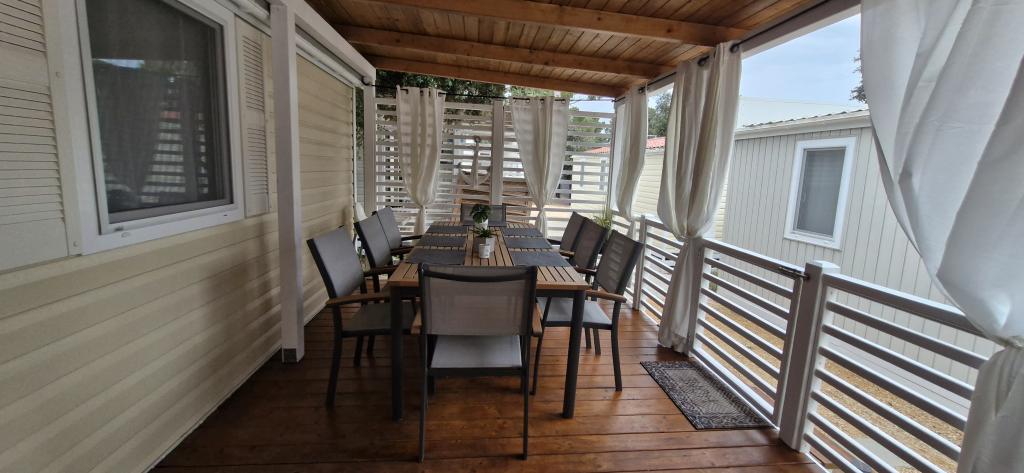 Nastanitev Mobile Home Korina se nahaja v Biogradu na Moru, 200 m od plaže Soline in 750 m od plaže Dražica. Gostom sta na voljo otroško igrišče in 24-urna recepcija. Nastanitev ob obali ponuja dostop do terase, brezplačno zasebno parkirišče in brezplačen WiFi. Apartma obsega 2 spalnici (ena soba z zakonsko posteljo in druga s 3 ležišči), v dnevni sobi je raztegljiv kavč, po potrebi pa tudi otroška posteljica. TV z ravnim zaslonom s satelitskimi programi, opremljeno majhno kuhinjo s hladilnikom in pomivalnim strojem ter 2 kopalnici s prho, zunanjo prho. Brisače in posteljnina so na voljo v nastanitvi. Gostje lahko uporabljajo opremo za peko na žaru v sklopu apartmaja. Priljubljene zanimivosti v bližini nastanitve vključujejo plažo Lumbrak, Zavičajni muzej Biograda na Moru ter marino Kornati in vodni park Dalmaland. Najbližje letališče Zadar je od nastanitve Mobile Home Korina oddaljeno 20 km.