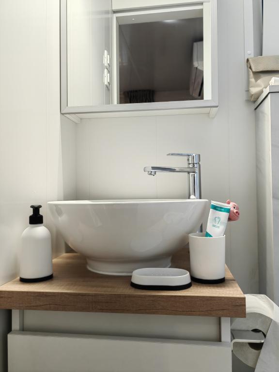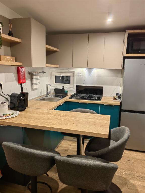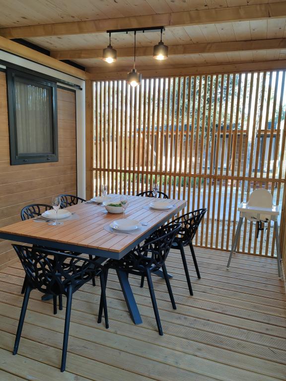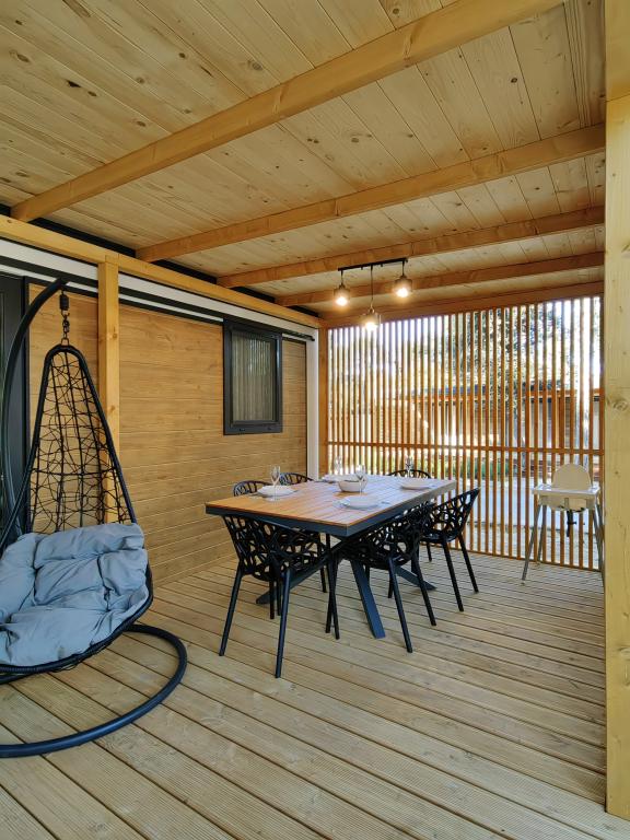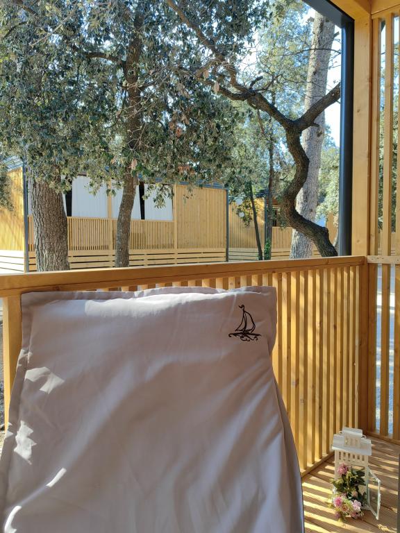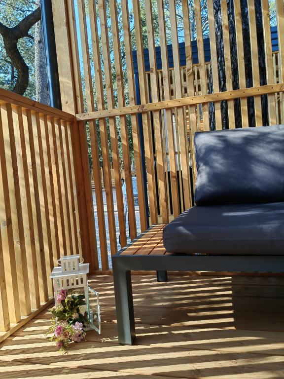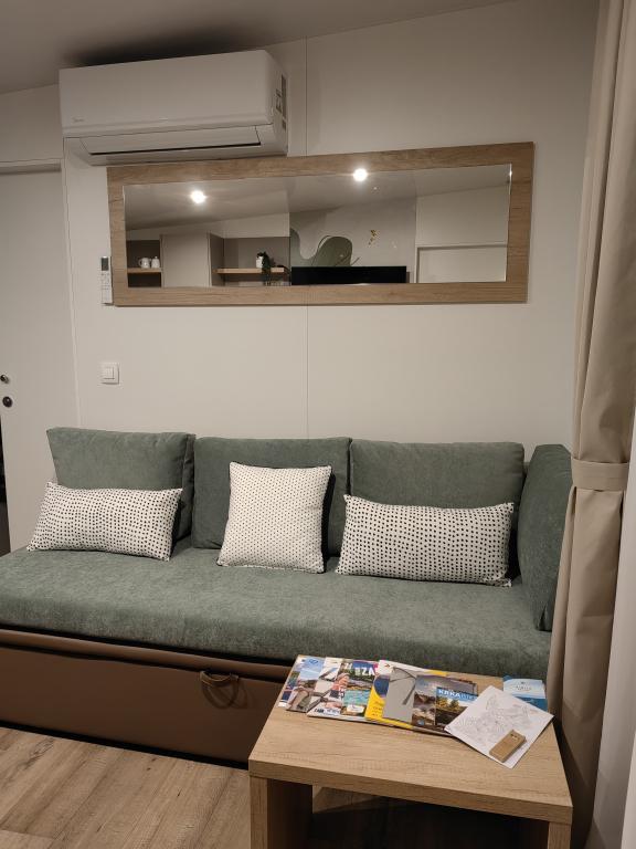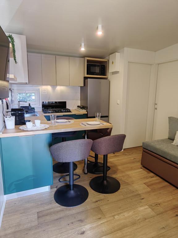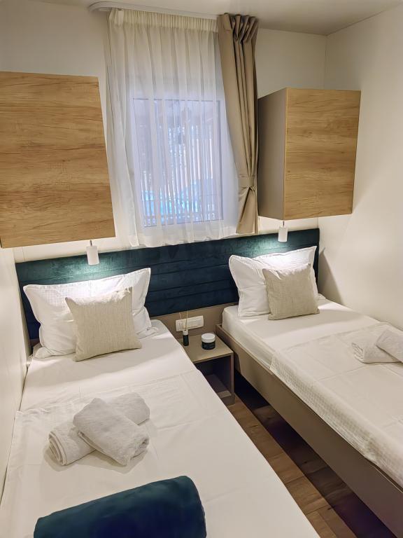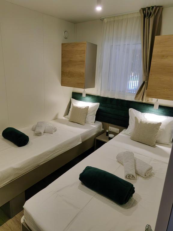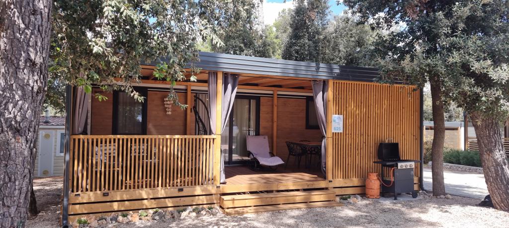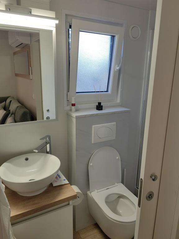 TONKA je popolnoma opremljena mobilna hiška z dvema sobama [ena z zakonsko posteljo in druga s tremi ločenimi posteljami], garderobnimi omarami, kopalnico s tušem, dnevno sobo z dodatnim raztegljivim ležiščem [130 x 180 cm], popolnoma opremljeno kuhinjo. , klima in velika terasa, ki je opremljena s plinskim žarom, ter jedilno mizo, terasno garnituro z mizico, dvema udobnima ležalnikoma in visečim stolom jajčkom z blazino, visečo gugalnico, brezžični dostop do interneta. celotno območje brezplačno. Mobilna hiška se nahaja v miru borovega gozda v kampu Soline park v Biogradu na moru. TONKA je 2-3 minute hoje oddaljena od restavracij, plaž in kavarn. V kampu so stroji za pranje in sušenje perila, trgovina, bankomat, pekarna, otroška igrala in vse kar potrebujete za prijetno bivanje.V neposredni bližini kampa je sprehajališče ob morju, center Biograda, marine Kornati in vse to cc 10 min hoje...