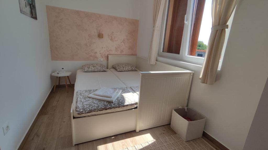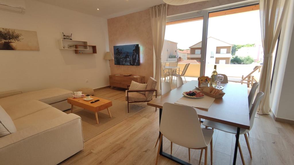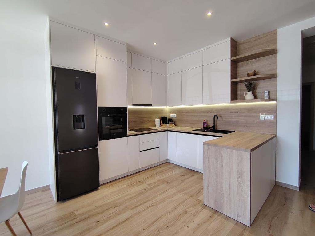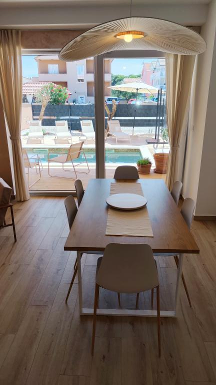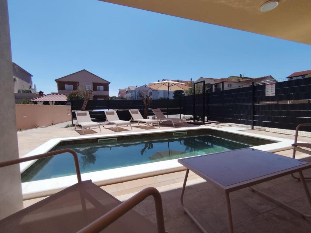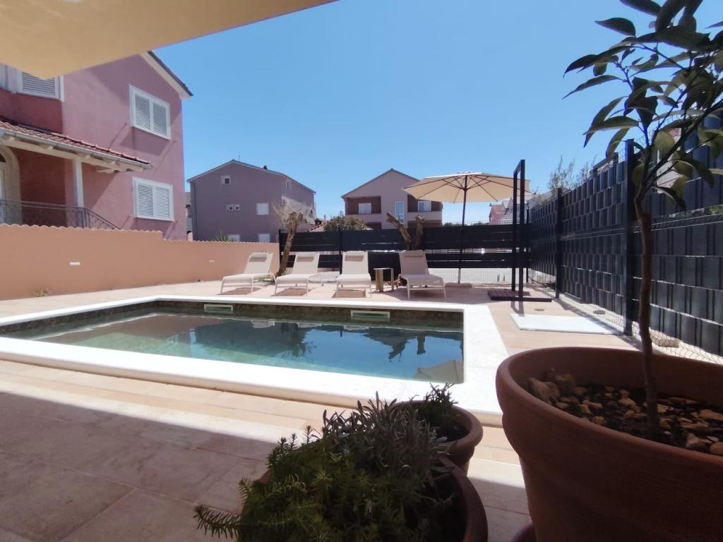 Novozgrajena dvonadstropna počitniška hiša z bazenom in dvema ločenima stanovanjskima enotama (pritličje in prvo nadstropje). Vsaka stanovanjska enota meri 90 kvadratnih metrov in je opremljena s 3 spalnicami, kuhinjo, kopalnico, teraso in dnevno sobo. Parkirišče je zagotovljeno.