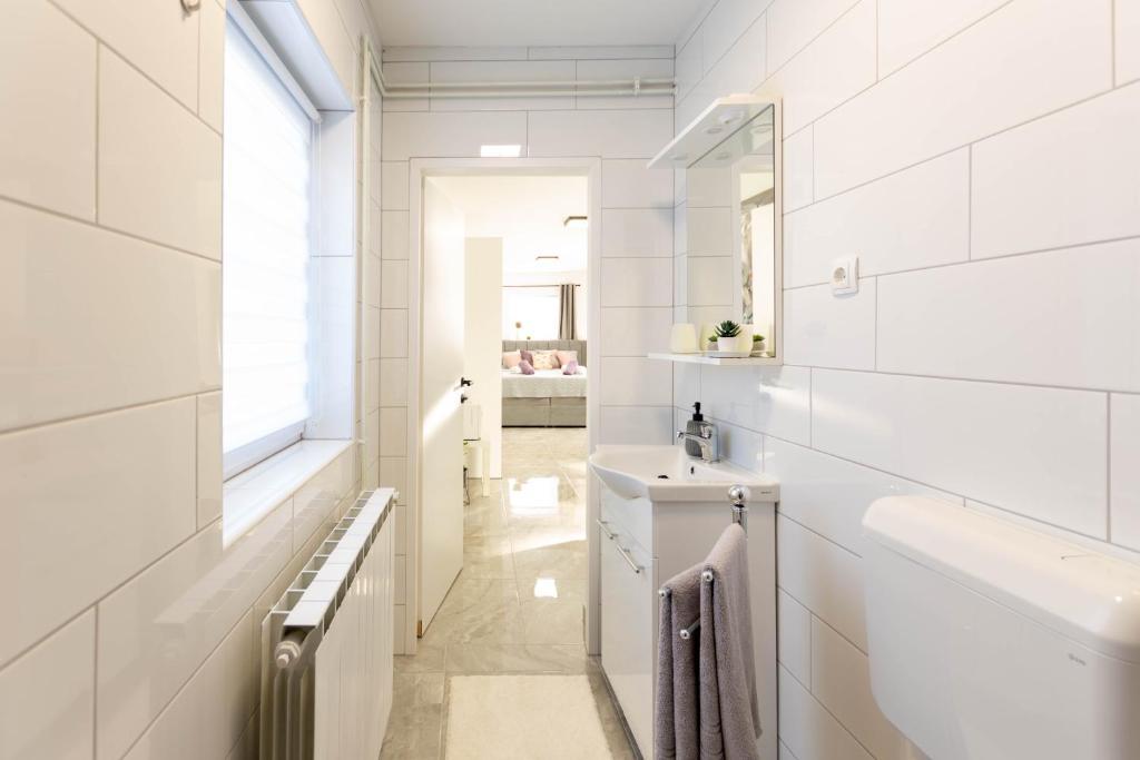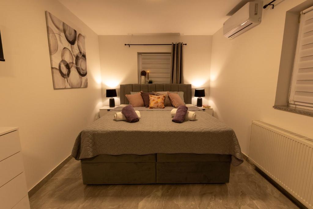 Hiša je sestavljena iz dveh studio apartmajev. Vsak Studio apartma vsebuje 1 spalnico s popolnoma opremljeno kuhinjo, 1 kopalnico, posteljnino, brisače, mila, geli za tuširanje, šampone, TV z ravnim zaslonom, skupno teraso za uživanje v kavi z velikim vrtom. Stanovanje se nahaja v mirni ulici cca 500 m od centra mesta in je umaknjeno v parcelo. Dvorišče in velik vrt ločita stanovanje od ceste, kar omogoča mirno bivanje v apartmaju in na terasi. Na dvorišču je parkirišče za osebne avtomobile.
