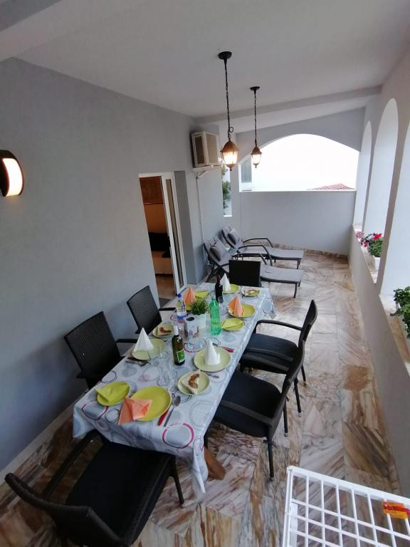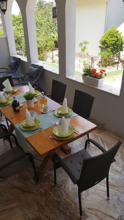 Apartmaji se nahajajo v mestu Bošana v samem Paškem zalivu. Opremljeni so z modernim pohištvom, vsak apartma ima spalnice, dnevno sobo, kuhinjo, kopalnico in teraso. Okoli same stavbe je prostorno dvorišče, obloženo z benkovaškim kamnom, ki ji daje posebno mediteransko vzdušje. Na dvorišču sta dva žara za uporabo, več sedežnih garnitur in dva tuša za zunanje tuširanje. Sam objekt je odmaknjen od glavne ceste in je zato varen za otroke in domače živali. Na voljo je tudi parkirni prostor za avtomobile.