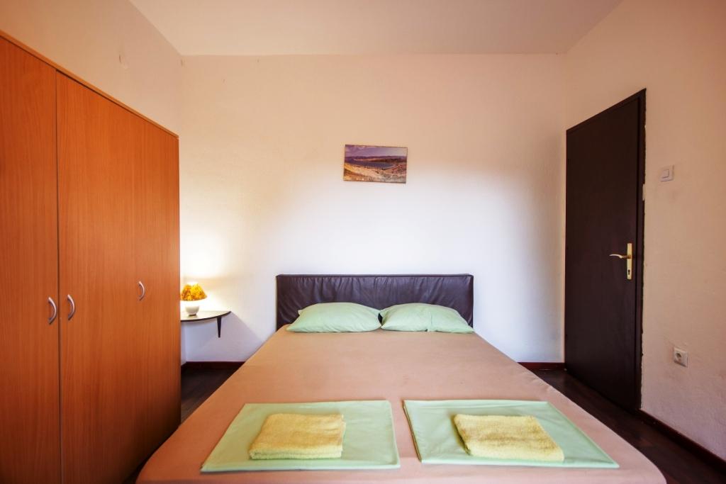NOVO v ponudbi ZASEBNA PLAŽA samo za naše goste! Petposteljna hiša s čudovitim razgledom na Paški zaliv se nahaja na povišanem delu in v bližini ni drugih hiš ali apartmajev, tako da imajo naši gostje popoln mir in zasebnost. Obstajata dva apartmaja ali najem celotne hiše kot enega za večje skupine. Apartma A6 trosobni apartma se nahaja v prvem nadstropju s kapaciteto 6 +1 s prostorno ograjeno teraso 60m2 s pogledom na morje, kuhinjo, kopalnico, vrtno prho, wifi, klimatsko napravo, parkirišče. Apartma A4 + 1 dvosobni apartma se nahaja v pritličju s kapaciteto 4 +1 z ograjeno teraso, obdano z zelenjem peterokotnik, kuhinja, kopalnica, wifi, klima, parkirišče.