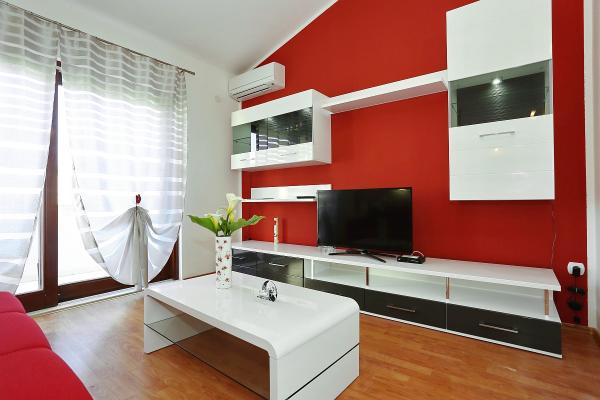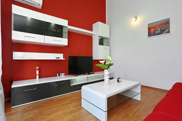 Zelo razkošno stanovanje, suverena uredba, ki vam bo dala občutek kakovosti in visoke urejenosti. Popolnoma opremljeni in moderni apartmaji v mirnem predelu Božava, ki se nahaja v neposredni bližini morja; Objekt se nahaja 2 min hoje do centra in 5 minut hoje do plaže. Luksuzni apartma ima 90 m2. Kuhinja, ki je nastal v visokega sijaja. v celoti opremljeno: mikrovalovna pečica, pečica, Kazan, moderen hladilnik je D Prostor je urejena v vijolični in beli ton z visoko kakovostno pohištvo.. WC vsebuje oblikovne ploščice, masažne kabine, veliko ogledalo, WC, bide in omare koncu ogledala. Dnevna soba je prostorna in nudi prijetno vzdušje, ki je super za pohištvo in LCD-televizijo z različnimi programi. Terasa ima lep razgled na vrt, se Celotna stavba prekrita s kakovostno internetno povezavo (Wi-Fi), kar seveda brezplačno. Pridite in preprosto uživate mir, lepoto in razkošje.