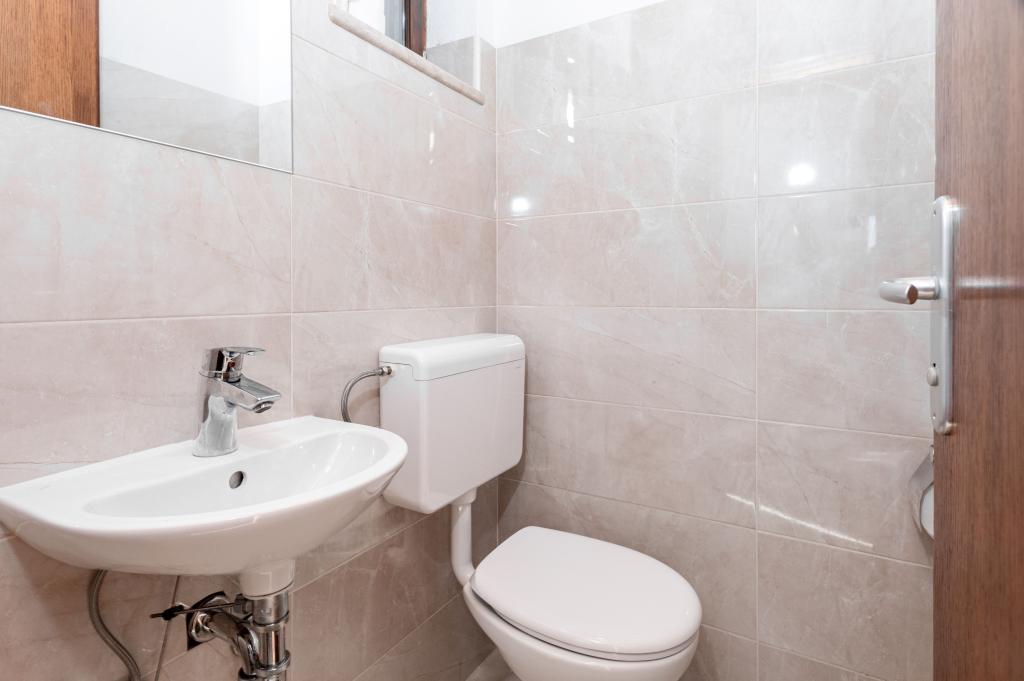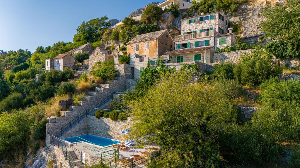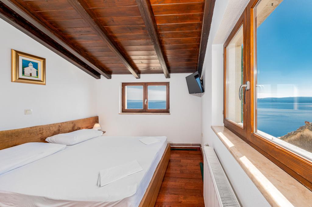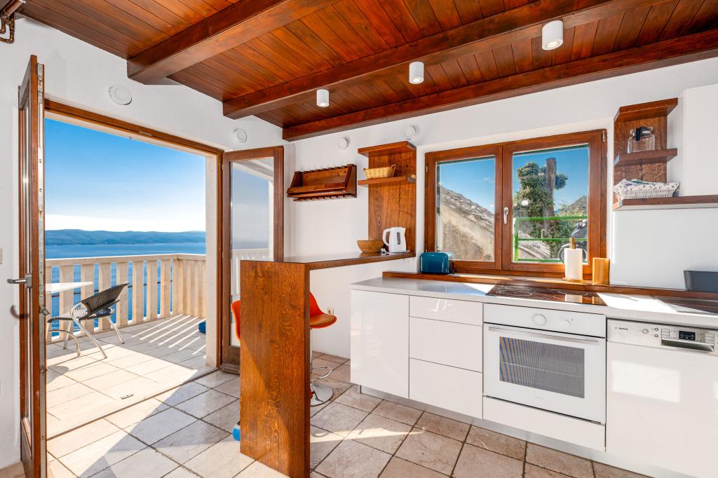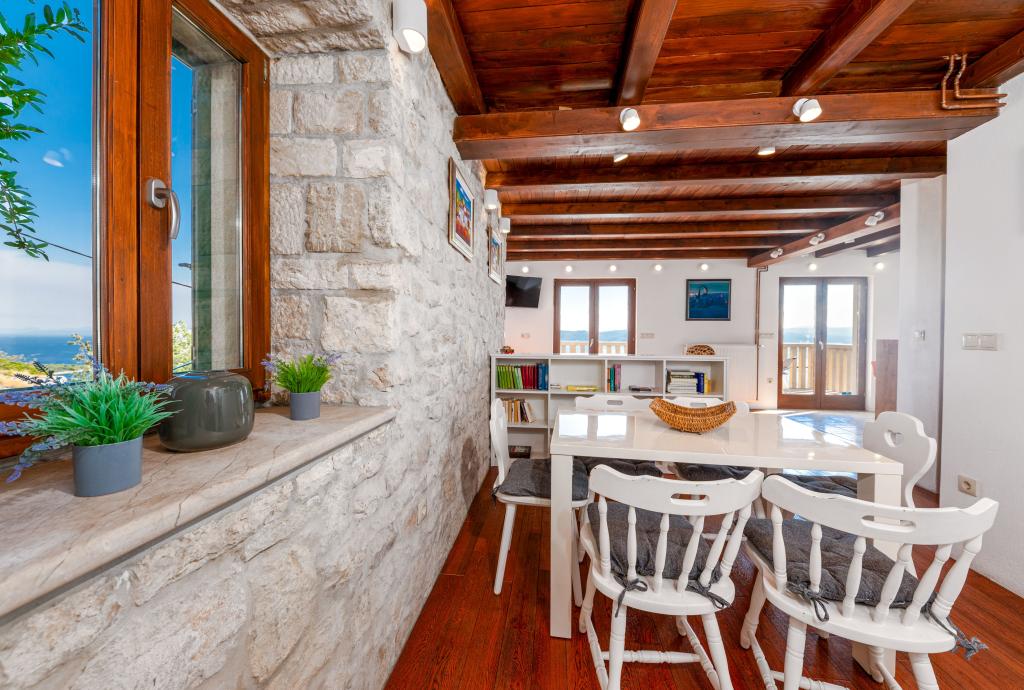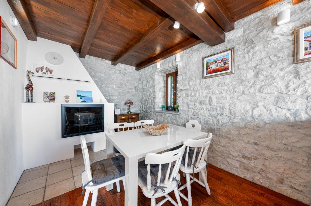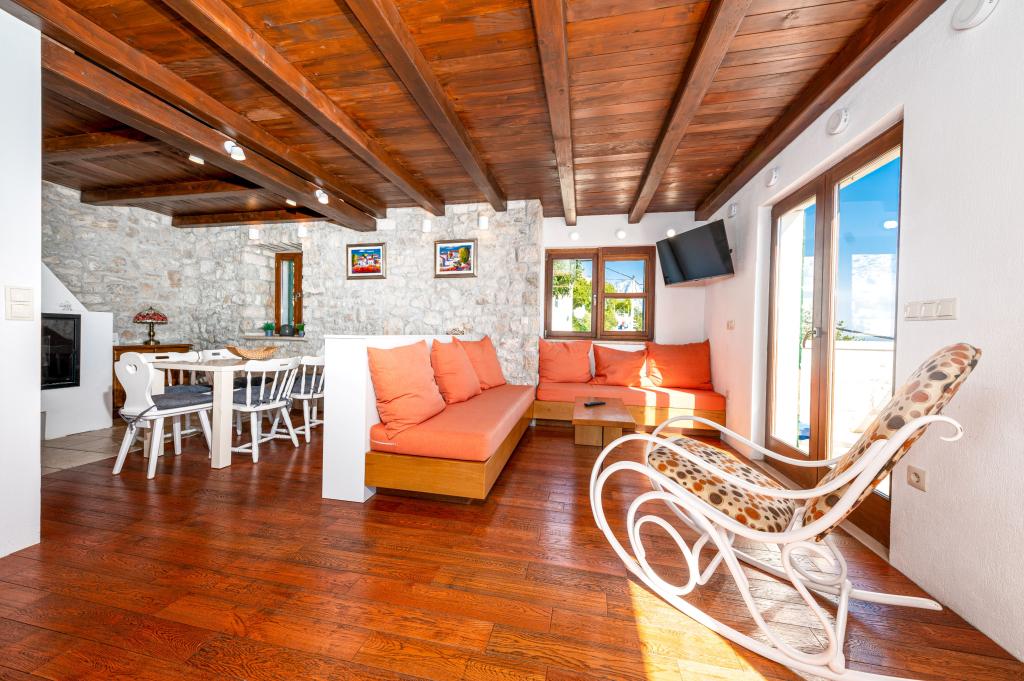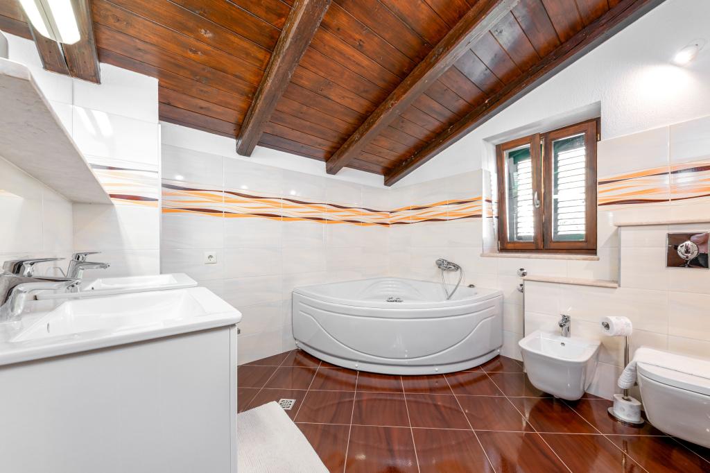 Dobrodošli v našem prostornem in očarljivem apartmaju, ki se nahaja v zasebni hiši s skupno tremi apartmaji - idealna izbira za miren in sproščujoč dopust v pristnem dalmatinskem ambientu. Apartma s 115 m² površine ponuja vse, kar potrebujete za prijetno bivanje. Sestavljen je iz dveh udobnih spalnic, popolnoma opremljene kuhinje, povezane s prostorno dnevno sobo, dveh kopalnic (ena od njih ima hidromasažno kad) in dodatnega ločenega stranišča. Rustikalna dekoracija in skrbno izbrani detajli ustvarjajo toplo vzdušje in pristno dalmatinsko vzdušje. Hiša se nahaja na kaskadnem terenu, stopnice pa vodijo do skupnega bazena. Bazen se nahaja na prostorni terasi, opremljeni z ležalniki in senčniki, idealni za sončenje in uživanje v razgledu. Zaradi stopnic in konfiguracije terena apartma ni primeren za osebe z invalidnostjo ali osebe z omejeno mobilnostjo. Zasebno parkirišče je na voljo tik ob hiši (kar je velika prednost v poletnih mesecih). Veselimo se vašega prihoda!