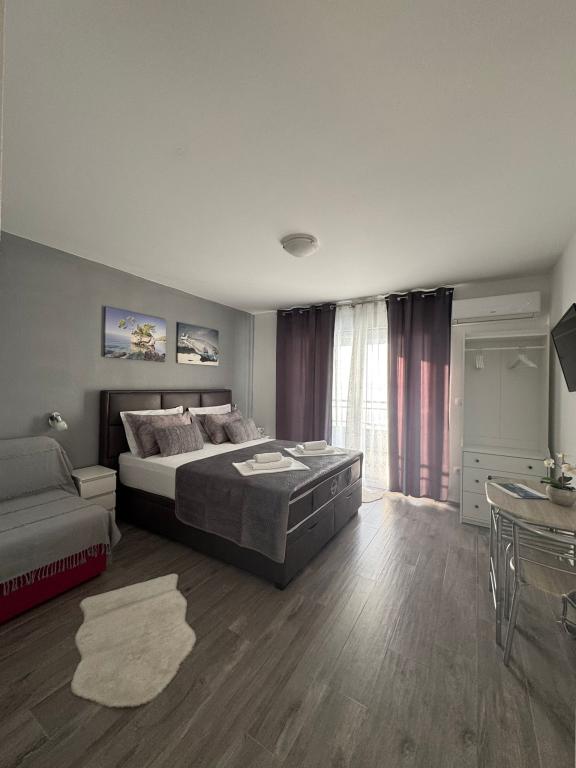 VILLA ORADA obdan z borovim gozdom s pogledom na morje in dalmatinske otoke, ki se nahajajo v mirnem zalivu Podcrkavlje v Donja Brela. 150 metrov stran so lepe plaže, kjer lahko vsakdo najde nekaj zase iz restavracije, kavarne, cocktail bari, spominkov in predmetov, za na plažo do vodnih športov. Apartma se nahaja le 10 minut hoje do mini trgov in potovalne agencije, ki v zameno ponuja pustolovski rafting na reki Cetini, v bližini mesta, pohodništvo na pobočju gore in izlete z ladjo do bližnjih dalmatinskih otokov. Brela je edinstven po svojih kristalno modro morje, lepe plaže in zalivi, in so prav tako kot idealen kraj za vaše počitnice in prijazni gostitelji bodo poskrbeli, da se počutim udobno in zadovoljni. Dobrodošli!