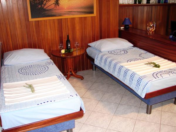 Nahaja se na mirni lokaciji, le 10 metrov od morja so apartmaji Bikin. Vsi apartmaji ponujajo imajo vse, kar potrebujete za udobno bivanje: popolnoma opremljeno kuhinjo, SAT TV, sef, brezplačno klimatsko napravo, brezplačen Wi-Fi internet. Zajtrk je na voljo samo v sobi. Vrt z žarom je na voljo. Parkiranje je brezplačno v bližini. Najbližji supermarket je 100 metrov, restavracija s kuhinjo mediteranskm 400m. Pralni stroj in likalnik so na voljo za doplačilo.