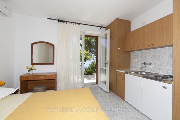 Victoria Apartmaji se nahajajo v mirnem delu Brela - Jardula, idealen za sprostitev in pobeg od vrveža. Smo le 30-50m od morja. Plaža se lahko doseže v delu in po stopnicah. Zaradi svoje lokacije v prvi in drugi vrsti do morja, apartmaji imajo pogled na morje in otok Brač. Apartmaji se nahajajo v pritličju in prvem nadstropju so z balkoni ali terasom.Svi klimatizirane in imajo brezplačen brezžični internet in naši gostje so zagotovljena s parkirno mesto. Ponuja dvojno A4 3 stanovanje, popolnoma novo A2 2 stanovanja in apartmaji / studiji za 2-3 oseb. Le nekaj sto metrov od nas so kakovost Restauran in plažni bar.
