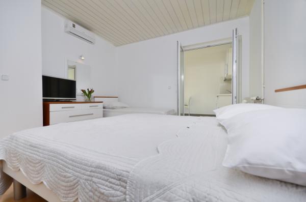 Turistična taksa je vključena v ceno.V tem apartmaju sem ostal z ženo in dvema otrokoma 10 noči. Prostora je bilo dovolj, ima vse kar potrebujemo in zelo smo zadovoljni. Mirno mesto in bližina morja, kar nam je bilo najbolj pomembno. Blizu promenade, ki je lepa, mesto, restavracije. Parkiraš avto in uživaš. Vsako priporočilo.