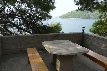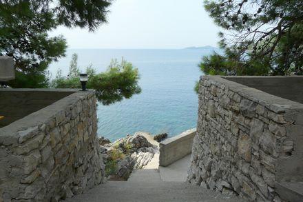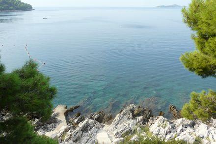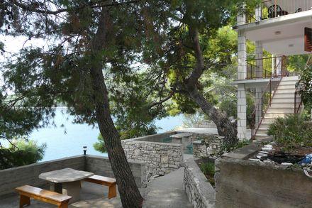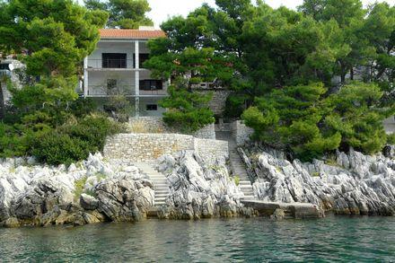 Nahajamo se v majhnem zalivu v bližini večjega naselja, z jasno in čisto vodo. Apartmaji se nahajajo v borovem gozdu v bližini morja. Lastnost ima velik vrt in priloženo plažo. Balkoni so velike površine, prostoren. Z balkona lahko vidite morskega dna. V dogovoru z lastnikom, ponujamo kratek vožnje z ladjo do bližnjih nenaseljenih zalivih.