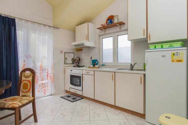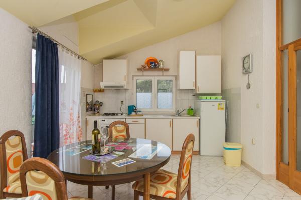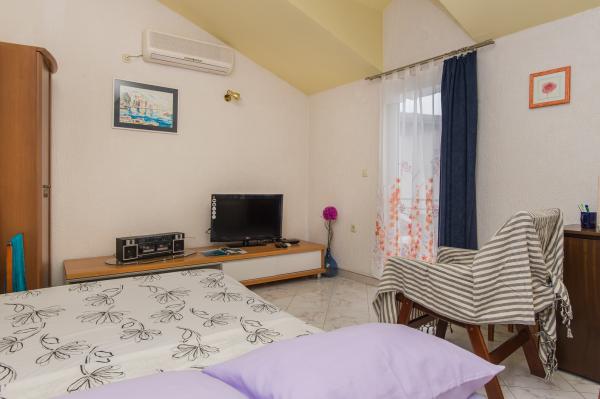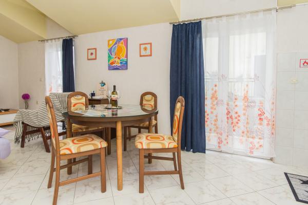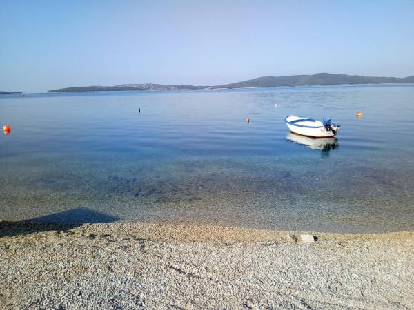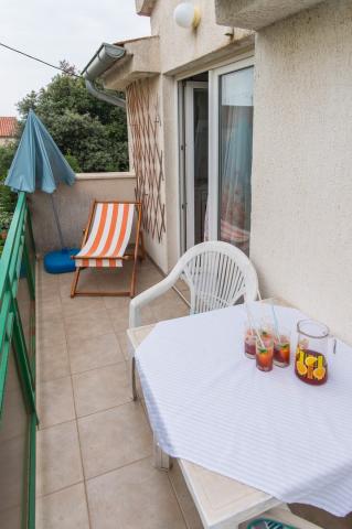 Dobro vzdrževan, prostoren apartma je le kratek sprehod do plaže, pekarne, restavracije, trgovine ... Parkirišče je brezplačno na dvorišču, v senci, na vhodu apartma ima lasten balkon, ločeno spalnico, kuhinjo s posodo, v dnevnem prostoru je široka postelja za dve osebi, balkon ... Klimatska naprava, SAT TV, neomejen dostop do interneta so brezplačni. . Na voljo sta posteljnina in brisače v apartmaju. Pridite in uživajte v počitnicah pri nas .... . . .