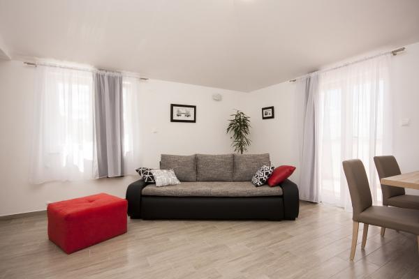 Sodobni apartmaji Brodarica blizu Šibenika. Najbližja plaža je oddaljena 5 minut hoje, in okolici je več lepih plaž. Hiša je na novo zgrajena, apartmaji so opremljeni in je bil prvi v najem 2016 Center Šibenik je 5 km, v bližini hiše / 200m / je avtobusna postaja. Najbližja trgovina je dve minuti, in le 2 km od nas so velik center Dalmare in prodajni trg. verige Lidl in jagode, bencinska črpalka. V bližini so številne dobre restavracije, ki jih je mogoče, in hoditi in plaža sta privlačna cafe bar, ki pogosto organizira koncerte in predstave lokalnih umetnikov. Lastnik živi v pritličju, in so na voljo za nasvet in pomoč, kadar je to potrebno.