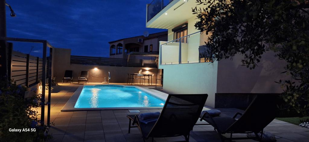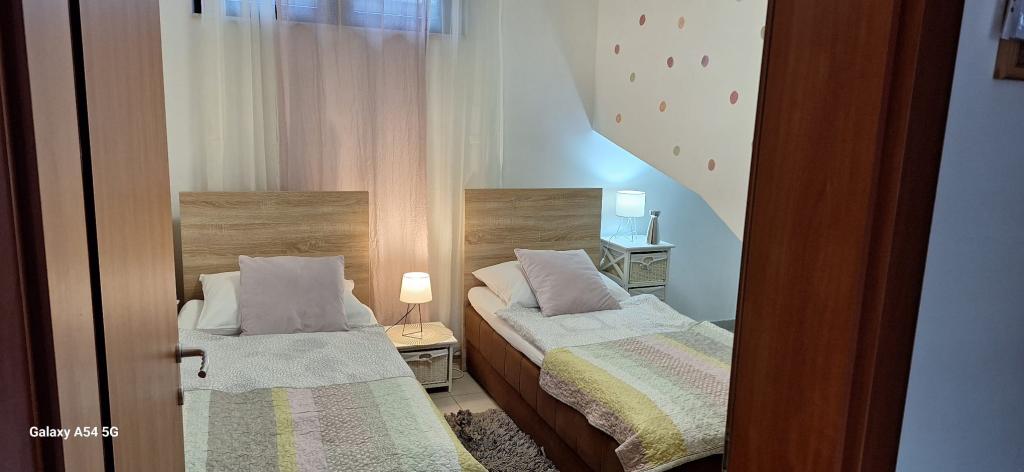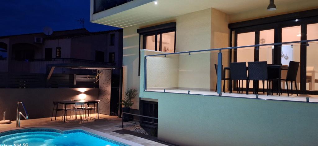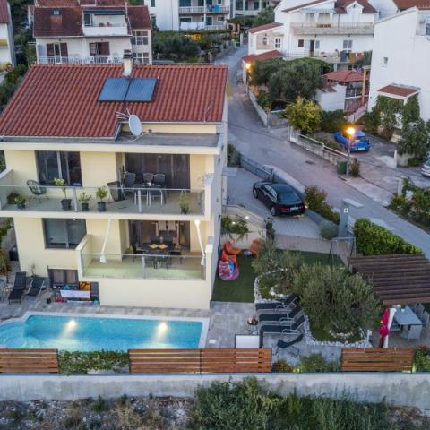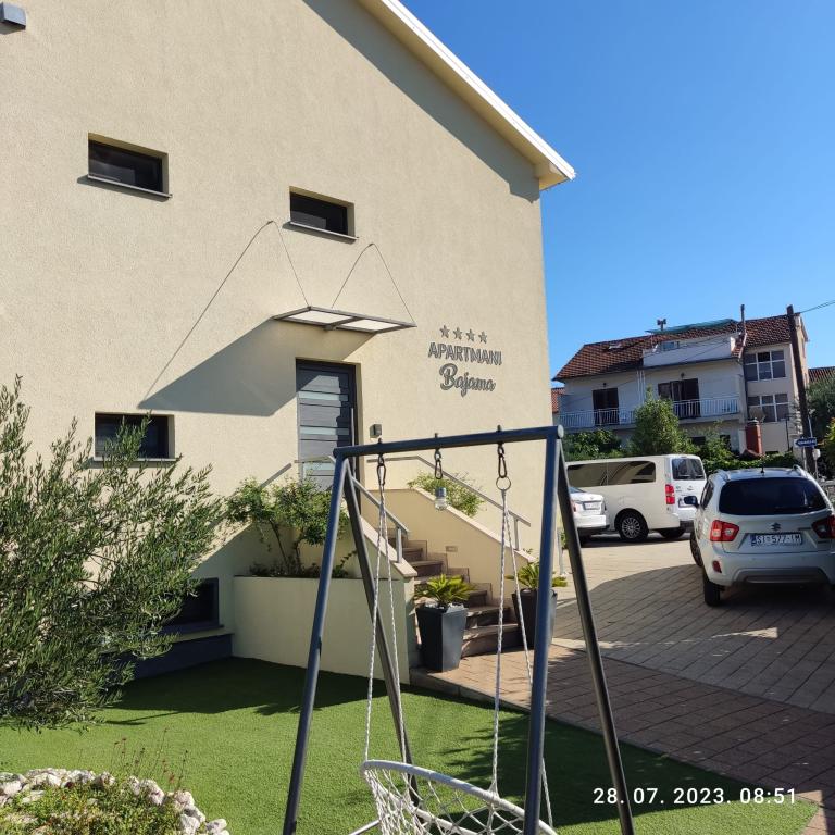 Apartmaji Bajama se nahajajo v šibenskem predmestju Brodarica, le 3 km od središča Šibenika. V hiši sta dva moderno urejena apartmaja kategorizirana s 4 zvezdicami, vsaka z dvema udobnima spalnicama, moderno opremljeno kuhinjo in dnevno sobo ter dvema kopalnicama in straniščem. Iz apartmaja 1 lahko uživate v pogledu na morje z lastnega balkona, gostje iz apartmaja 2 pa imajo svoj neposreden izhod na lastno teraso, kjer se nadaljuje skupno dvorišče z bazenom. Poleg tega imajo gostje dostop do žara, prostora za sončenje za sončenje, ležalnikov, zunanjega tuša, skupne vadbene / igralne sobe in parkirnih mest v ograjenem dvorišču. Le 100m od prodnate plaže z bari na plaži in otroškimi objekti, 1,5 km od letovišča Solaris s slavnim vodnim parkom in 3 km od centra Šibenika, mesta, bogatega s kulturno in zgodovinsko dediščino, je počitniški dom Bajama idealen za družinske počitnice.