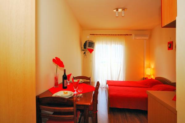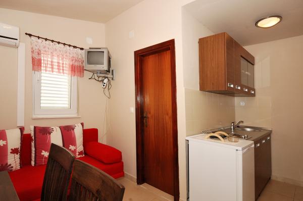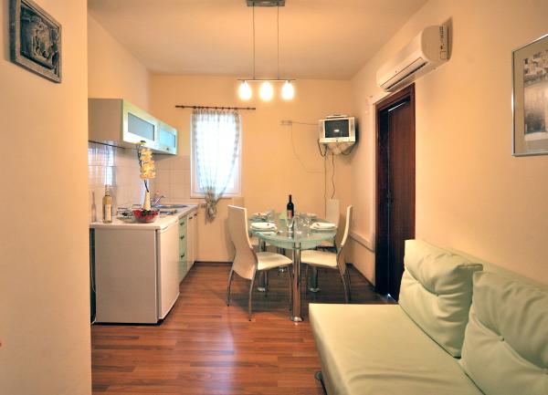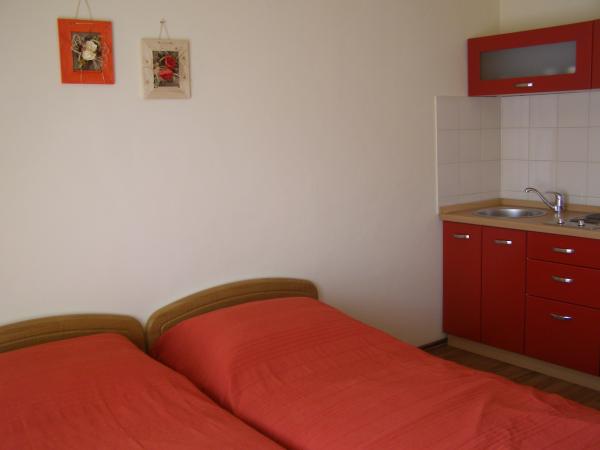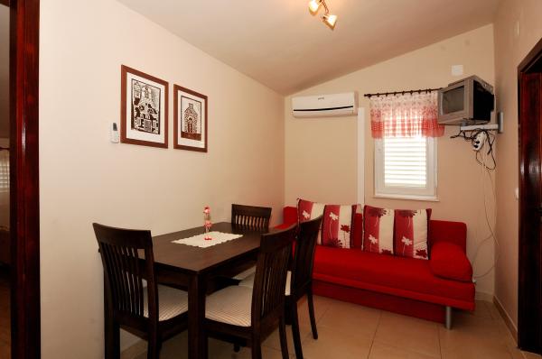 Prijetno, novo obnovljeni apartmaji se nahajajo na samem začetku Brodarica, le nekaj minut hoje od plaže v Brodarici. Nedaleč od apartmaja se nahaja Nacionalni park Krka in otok Krapanj, najnižji otok v Sredozemlju, z dolgo zgodovino spužarstva. Studio apartmaji so sestavljeni iz sobe, kjer je kuhinja, dve ležišči, ločena kopalnica, balkon (vse razen A5). Apartmaji so primerni za 4 osebe je sestavljen iz 2 spalnici, kopalnica, kuhinja, dnevna soba s kavčem, balkon. Apartmaji so primerni za 2-4 oseb, ki ga sestavljajo kuhinja, dnevna soba s kavčem, dvoposteljna soba, kopalnica, balkon (vse razen A8). Vsi apartmaji so klimatizirani. Gostje imajo dostop do TV, satelit, in večina enote imajo balkon s pogledom na morje. Gostje lahko uporabljajo žar in parkirni prostor.