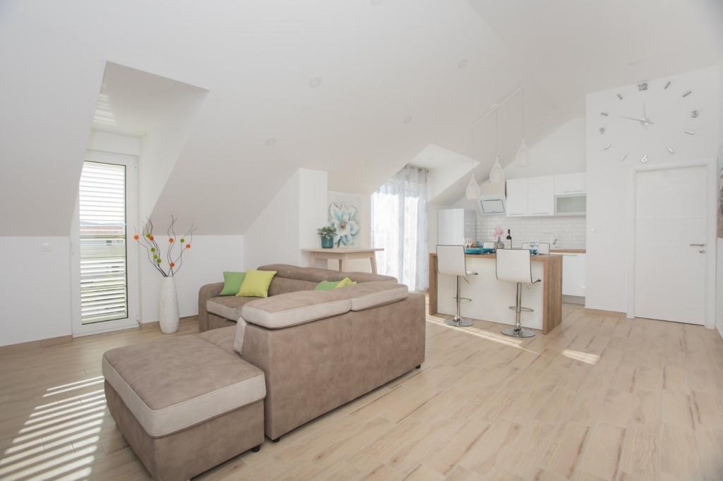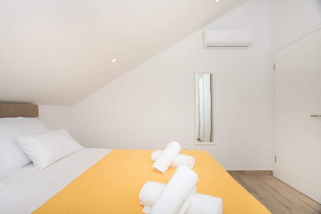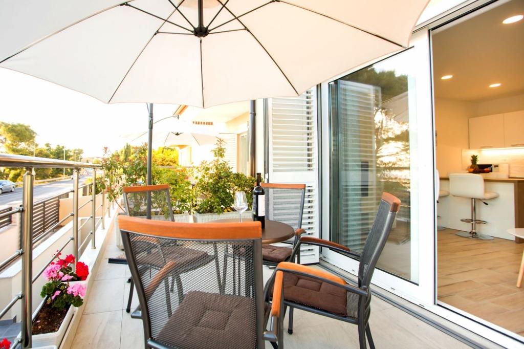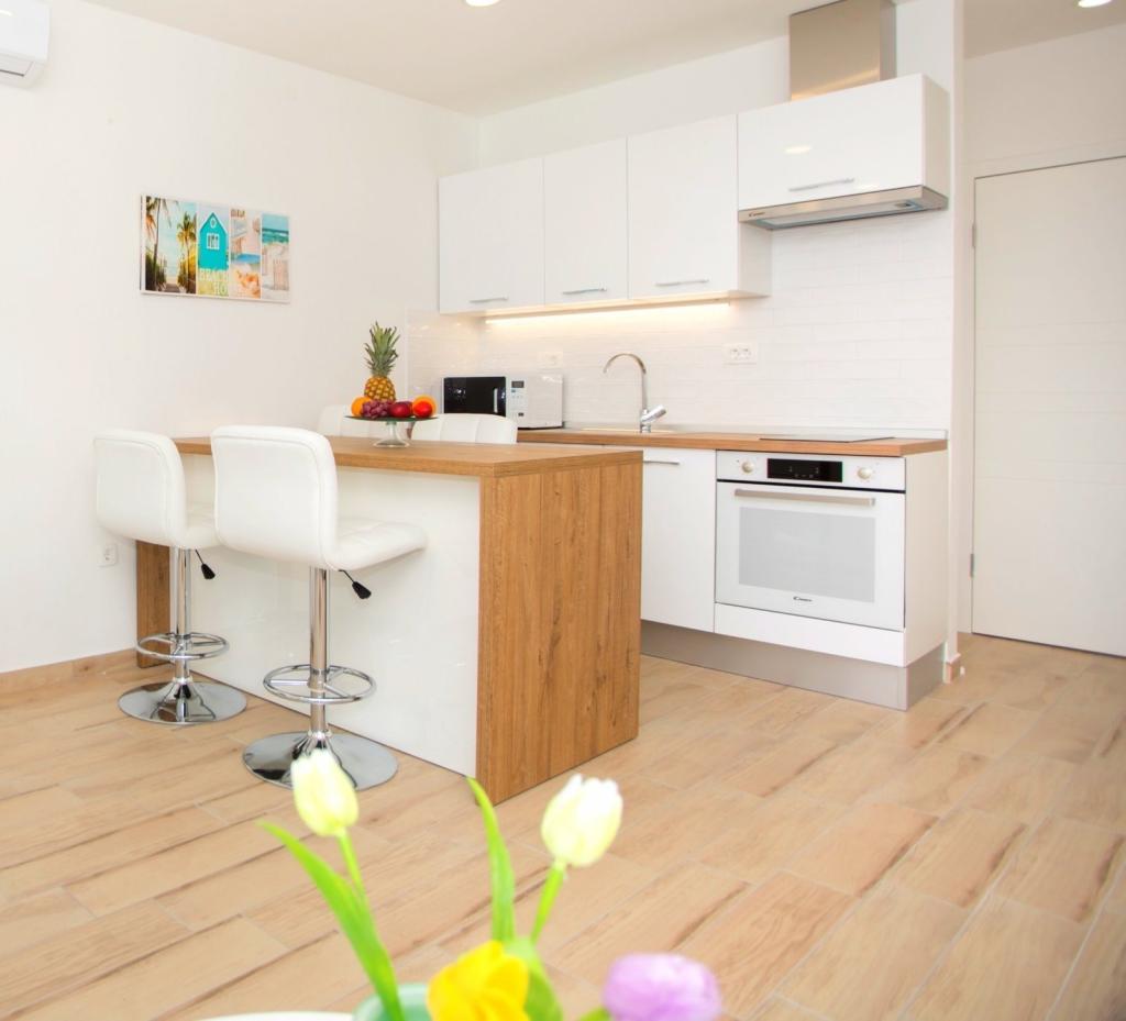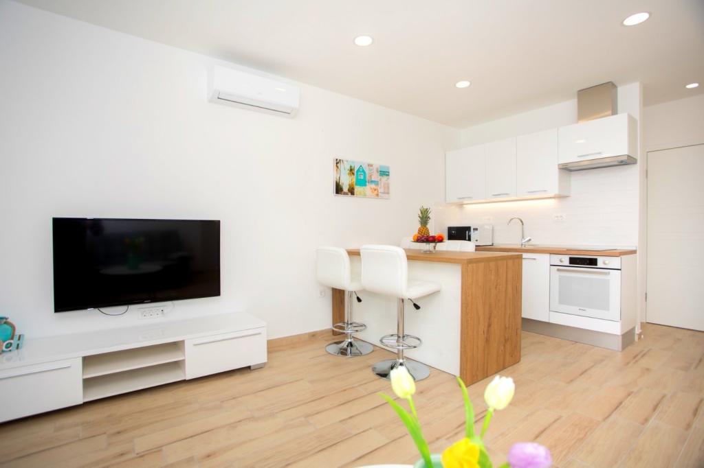 Moderno opremljeni novi apartmaji se nahajajo 50m od morja in 2 minuti hoje do zabavnih vsebin kot so restavracije, kavarne, otroška igrišča, promenade. Apartmaji so v celoti klimatizirani in opremljeni z varovanimi parkirnimi mesti in video nadzorom. Vsi apartmaji imajo pogled na morje in zunanje terase z zaščito pred soncem.