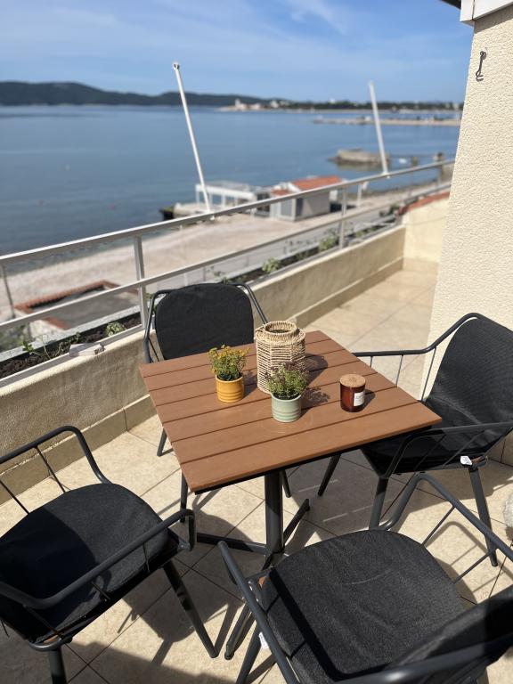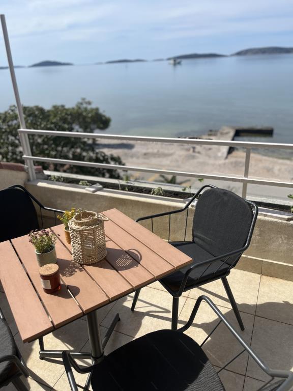 Izkoristite priložnost za nepozabne počitnice v našem čudovitem apartmaju, ki se nahaja v prvi vrsti ob morju. Uživajte v čudovitem pogledu na kristalno čisto morje z vašega zasebnega balkona. Apartma je moderno urejen in opremljen z vsemi potrebnimi vsebinami za prijetno bivanje. Poleg tega vam neposreden dostop do plaže omogoča, da uživate v osvežilnem kopanju. To je idealen kraj za sprostitev, uživanje v sončnih zahodih in ustvarjanje nepozabnih spominov ob šumu valov. Doživite čarobnost v našem stanovanju!