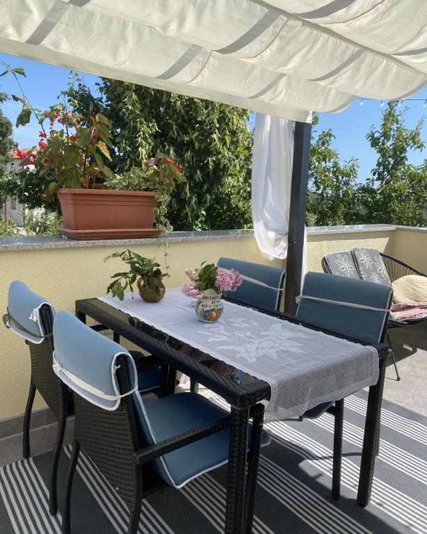 Vse je bilo popolno. Domačin nas je toplo sprejel in nam vse razložil. Vedno je bil pripravljen odgovoriti na vsa vprašanja in nam dati nasvete, vendar nikoli ni bil vsiljiv. Stanovanje se nahaja v mirnem predelu v 2. nadstropju. Apartma ima veliko teraso s pogledom na morje in je opremljen z vsem, kar potrebujete. Za zajtrk je bila na voljo celo kava, mleko, sladkor in čaj. Sadje smo dobili tudi z lastnega vrta. Najlepša hvala gostiteljskemu paru za velikodušno gostoljubje. V vasi je nekaj zelo dobrih restavracij, nekaj barov/kavarn, pekarna, mesnica in 2 majhni supermarketi, pa tudi kmečki turizem z dobro hrano. Turistične informacije so tudi za vogalom, vse je dosegljivo peš. Vrnili bi se.