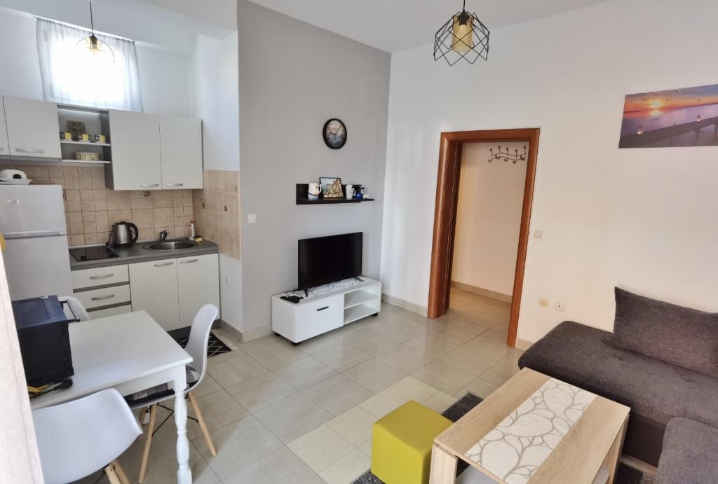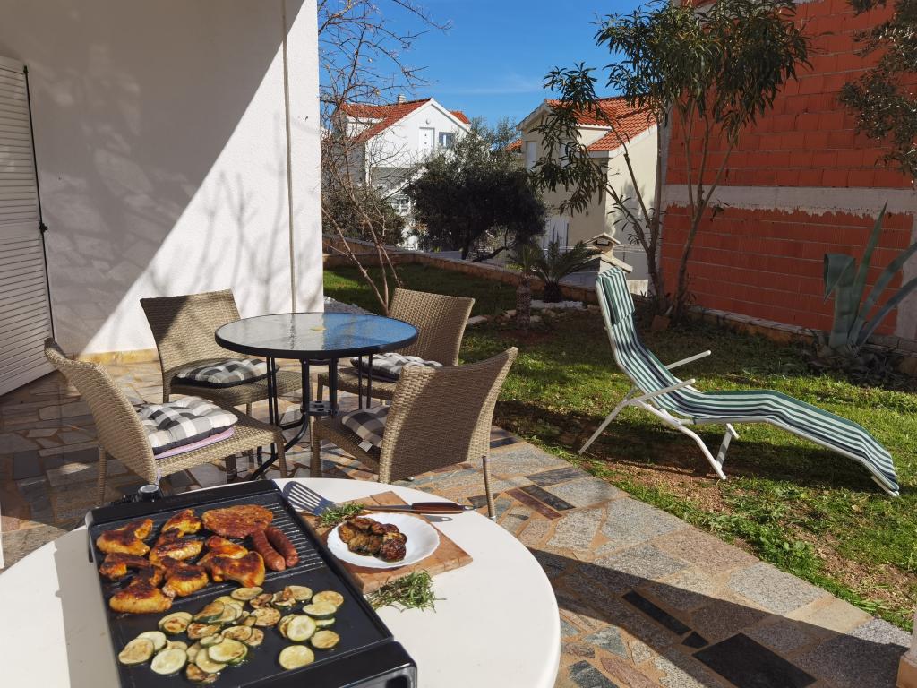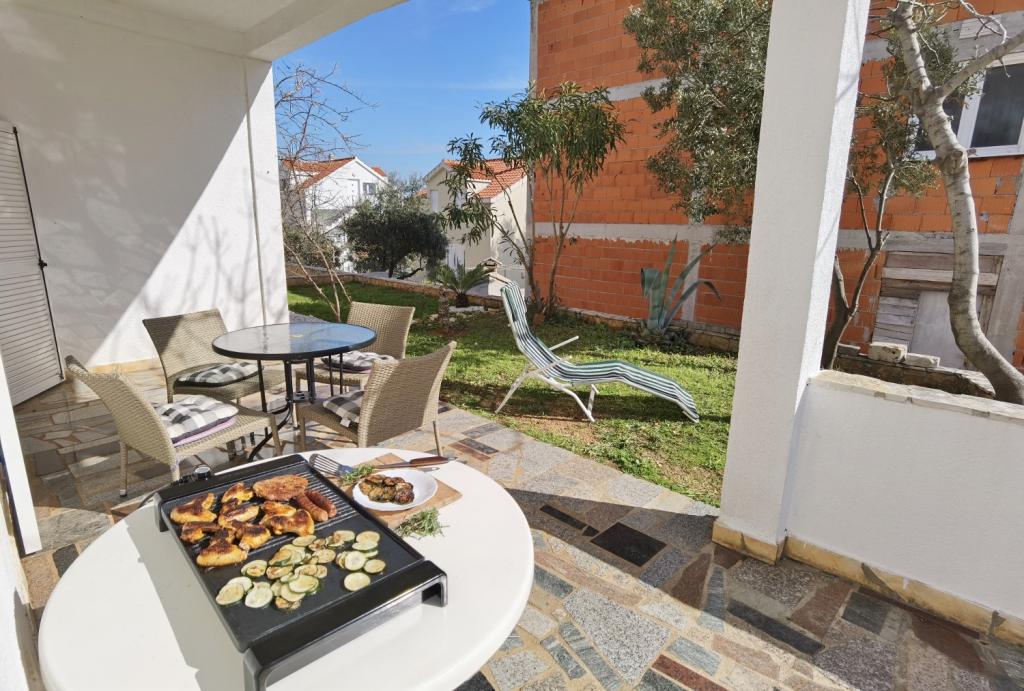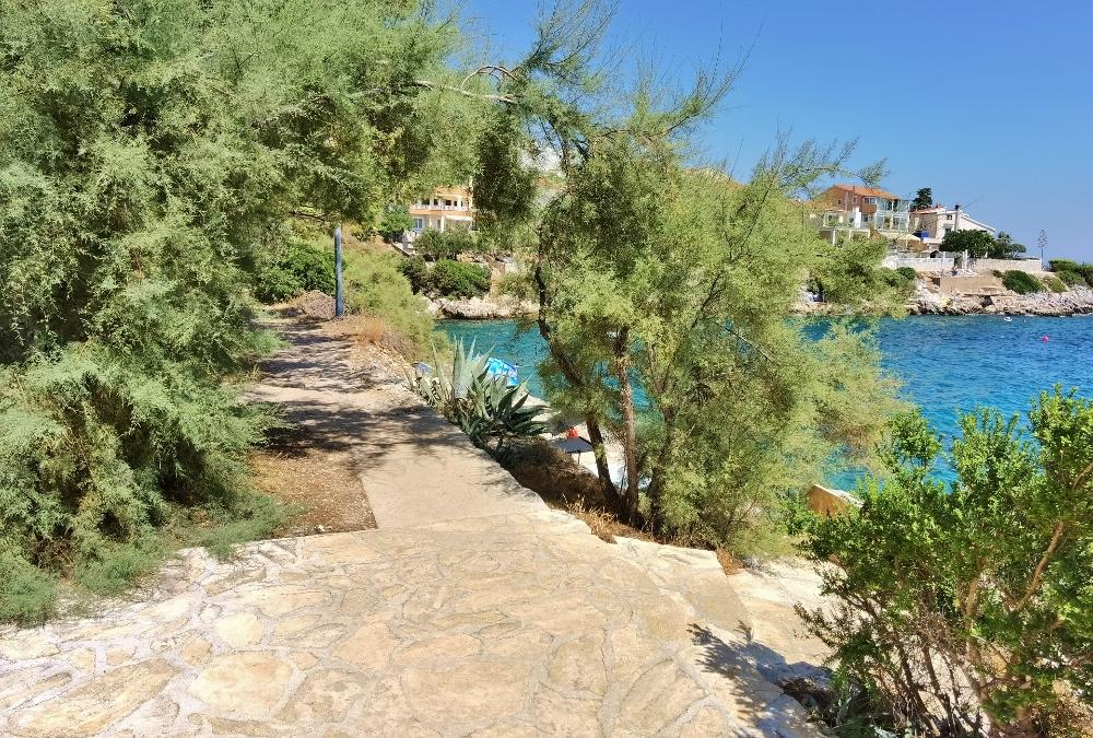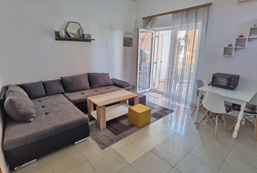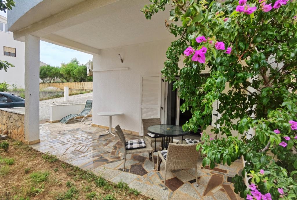 Čudovit apartma 70 m od morja, z vrtom, žarom, ležalniki in pogledom na morje. Apartma je namenjen za 3-4 osebe, ima 1 spalnico, dnevno sobo z raztegljivim kavčem, opremljeno kuhinjo, pralni stroj, klimatsko napravo, zasebno parkirišče. Tukaj se lahko sončite na ležalnikih, kuhate na žaru in preživljate čas na prostem. Visoki stropi in pritličje zagotavljajo udobno temperaturo tudi v vročem vremenu. Najbližja plaža je betonski plato, od koder se odpira širok pogled na morje in otoke, kjer tudi v najvišji sezoni ne bo veliko ljudi. Na voljo je tudi lepa plaža z drobnimi kamenčki, primerna za otroke, 500 m stran.