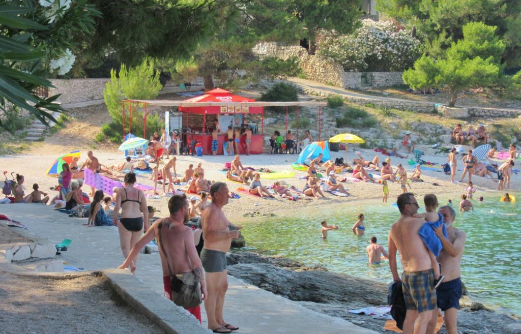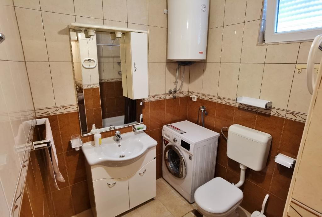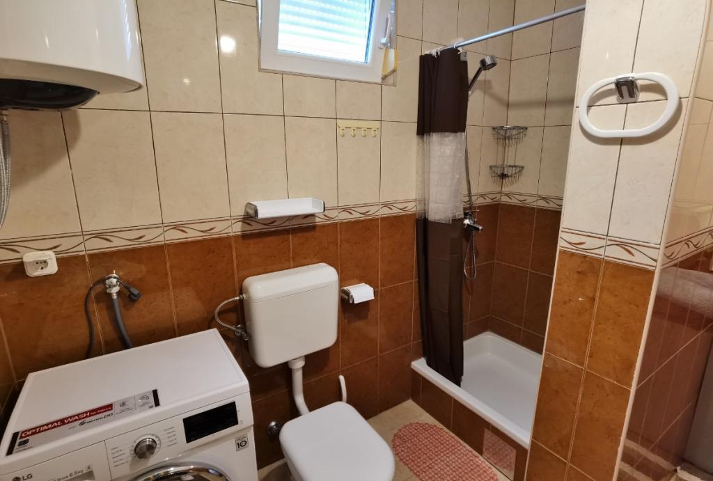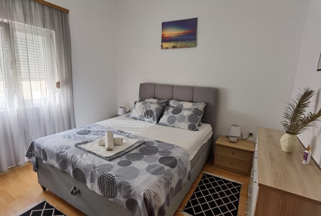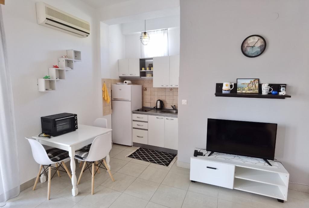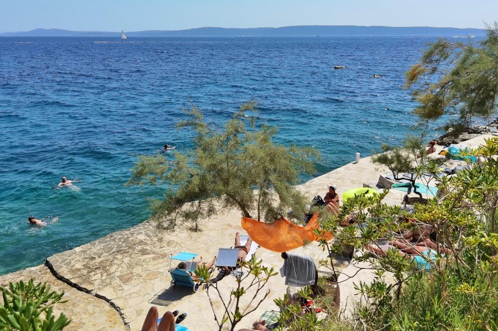 Čudovit apartma 70 m od morja, z vrtom, žarom, ležalniki in pogledom na morje. Apartma je namenjen za 3-4 osebe, ima 1 spalnico, dnevno sobo z raztegljivim kavčem, opremljeno kuhinjo, pralni stroj, klimatsko napravo, zasebno parkirišče. Tukaj se lahko sončite na ležalnikih, kuhate na žaru in preživljate čas na prostem. Visoki stropi in pritličje zagotavljajo udobno temperaturo tudi v vročem vremenu. Najbližja plaža je betonski plato, od koder se odpira širok pogled na morje in otoke, kjer tudi v najvišji sezoni ne bo veliko ljudi. Na voljo je tudi lepa plaža z drobnimi kamenčki, primerna za otroke, 500 m stran.