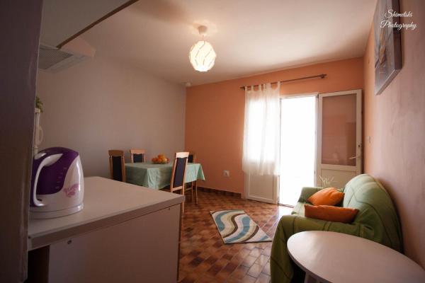 Hiša ima 5 apartmajev, od tega 3 dve in 2 enoposteljni sobi. Vsi dvosobni apartmaji imajo klimatsko napravo. Vsakdo se lahko poveže z internetom prek brezplačnega brezžičnega interneta. Oddaljenost od morja in skalnate plaže je 100m in do zaliva Žitna 400m Gostom je na voljo tudi žar. Ribolov je vključen, če gostje zanima.
