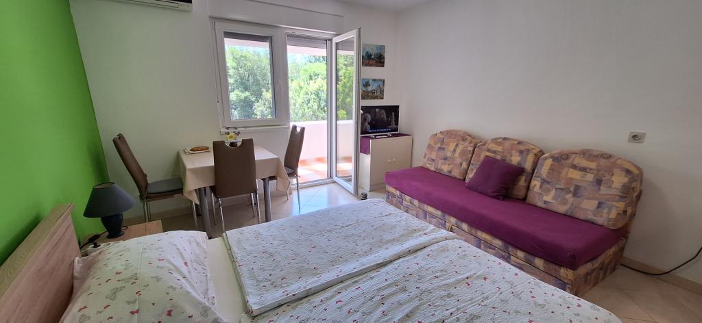 V prvem nadstropju stanovanjskega bloka balkon s pogledom na gozd in zelenje. Mirno in udobno za spanje. V bližini je teniško igrišče, igrišče za košarko, kolesarske steze, promenade, ter najlepši in največji oljčni nasad na Hrvaškem. Priljubljeno družinsko letovišče tudi za ljubitelje narave. Naravne plaže, marina, žar, restavracije, trgovine, pekarna, slaščičarna in pošta so na voljo v neposredni bližini apartmaja.
