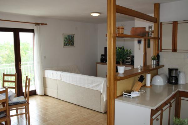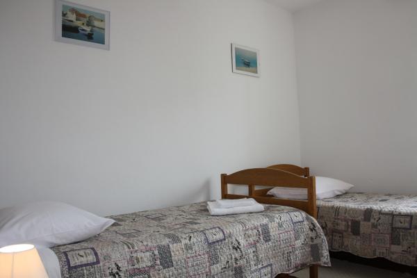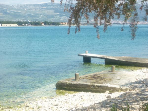 Željka Apartmaji se nahajajo le 30 metrov od morja, na otoku Čiovo, v območju Mastrinka. Sestoji iz dveh ločenih stanovanj, eno stanovanje je v pritličju, medtem ko drugi stanovanje v prvem nadstropju. Apartma 1 je v pritličju in ima površino 66 m2 in balkon 15 m2. Sestavljen je iz dveh spalnice, kuhinjo, dnevni prostor z raztegljivim kavčem za 1 osebo in kopalnico. V eni spalnici je zakonska postelja, medtem ko drugi dvema ločenima ležiščema. To lahko sprejme skupaj 5 oseb. Apartma 2 se nahaja v prvem nadstropju in ima površino 80 m2 in balkon s pogledom na morje 15 m2. Sestavljen je iz dveh spalnice, kuhinjo, dnevni prostor z raztegljivim ležiščem za 2 osebi in kopalnico s pralnim strojem. Primeren je za 6 oseb. Oba apartmaja sta opremljena s klimatsko napravo in WiFi internet in gostje imajo na uporabo zunanji žar in parkirišče. Na 200 metrov je velik supermarket, medtem ko je mesto Trogir nahaja 3 kilometre.