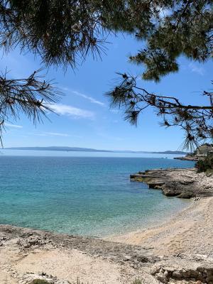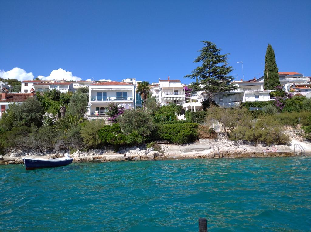 Apartma je na novo urejen in popolnoma opremljen ter je edini za najem v objektu. Nahaja se v 1. nadstropju s teraso velikosti 18 m2, s čudovitim razgledom na otok Šolta in morje, ki je oddaljeno 30 m. Apartma se nahaja v mirnem in zelenem okolju. Ni prometa nobenih vozil ali pešcev. V okolju živijo ptice, njihovo petje pa lahko slišite od jutra do večera. Plaža je od apartmaja oddaljena 150 metrov oziroma približno 3 minute hoje. Plaže so raznolike, od skalnatih, betonskih, prodnatih do peščenih. Objekt je oddaljen 50 km od Narodnega parka Krka in Šibenika ter 30 km od Splita. Pridobili smo status LOKALNEGA GOSTITELJA.