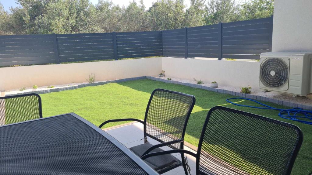 Popolnoma in sodobno opremljeno stanovanje v mirnem okolju. Najbližja plaža je oddaljena 1,6 km, najbližja trgovina pa km. Na plaži imajo restavracije. Stanovanje je obrnjeno na morje, dvorišče 47 kvadratnih metrov je obrnjeno na naravo. Stanovanje ima pomivalni stroj, pralni stroj, opremljeno kuhinjo +, zunanji žar, ter seveda parkirišče ob apartmaju. Letališče je oddaljeno le 9 km.