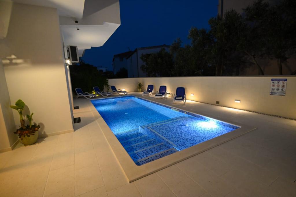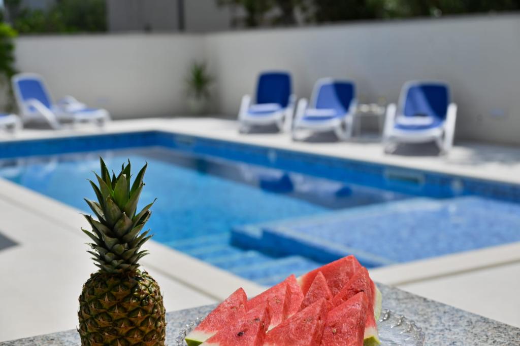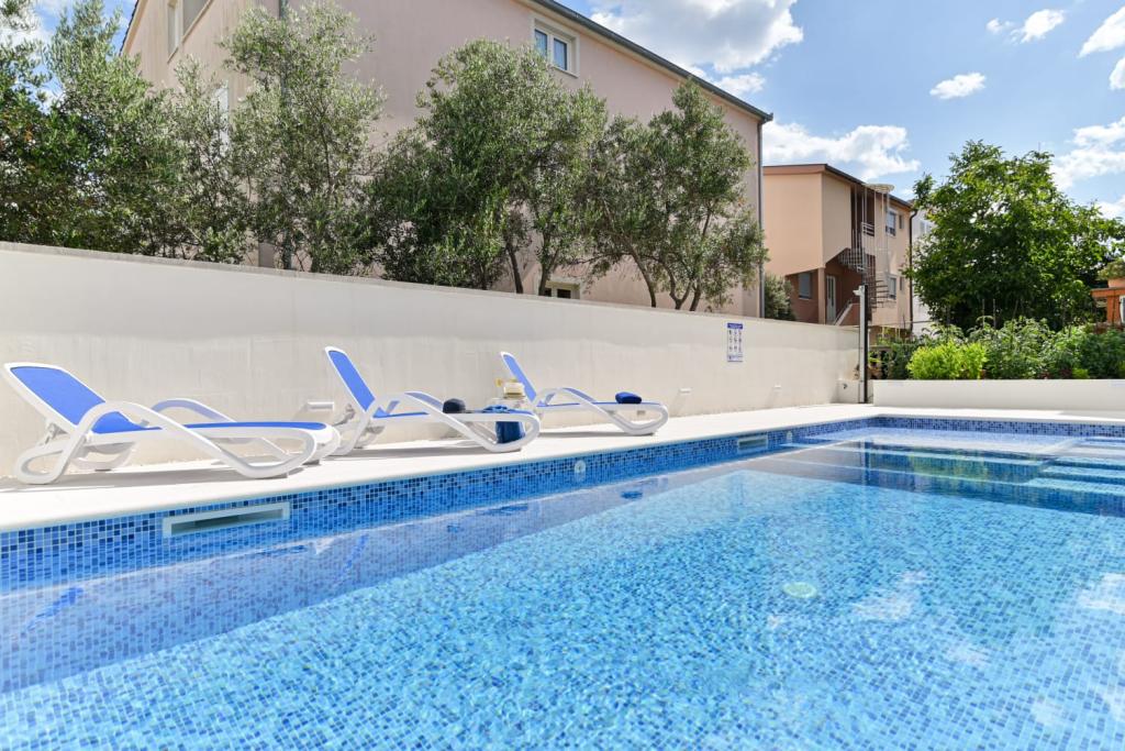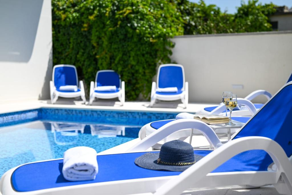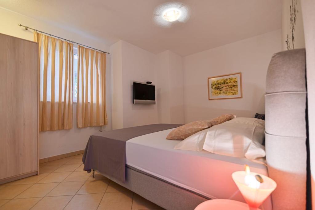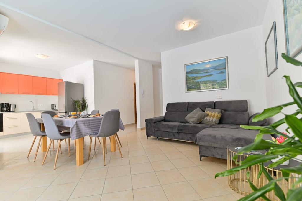 Na južni strani otoka Čiovo, ki je z dvema mostovoma povezan s starim in zgodovinskim mestom Trogir in celino, 200 m od kristalno čistega morja in plaže, vam ponujamo popolnoma opremljen apartma z zasebnim bazenom. . Apartma z dvema spalnicama se nahaja v pritličju, pred katerim je zasebni bazen in žar. Parkirišče je zagotovljeno v sklopu objekta.
