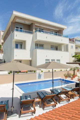 Villa Aurora je lepa nova stavba na odlični lokaciji zgradili 2014-2015 let, v celoti klimatiziran in luksuzno opremljene. To se nahaja na otoku Čiovo v majhnem in mirnem mestecu Trogir. To je najbolj privlačna turistična destinacija v Riviera Trogir. Villa Aurora se nahaja le 25 m od kristalno čista voda in lepih plaž. Mesto Trogir, ki je na opisu UNESCO spomenikov svetovne kulturne dediščine, je le 5 km in letališče le 8 km. Villa Aurora ima 4 luksuznih apartmajev, zunanji bazen, vse z balkoni in terase ponuja čudovit pogled na prelepo morje in okoliške otoke.