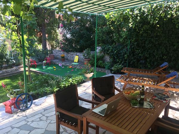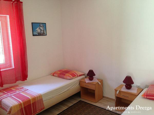 Popolnoma opremljeni apartmaji, ki se nahajajo v drugi vrsti do morja. Stanovanje v pritličju ima dve spalnici, v zgornjem pa 3 spalnice. Vsak apartma ima svojo veliko teraso. Objekt se nahaja 20 m od plaže, primeren za majhne otroke in neplavalce. V bližini je potapljaška šola, 15 minut hoje od majhnega središča s pošto, lekarna, kavarna, trgovina, zdravnik in majhna tržnica. 4 km od apartmaja je Trogir, mestni muzej pod Unescovo zaščito.