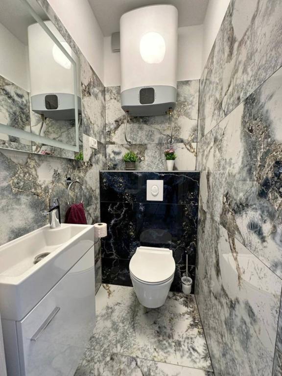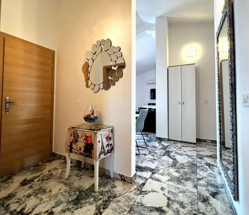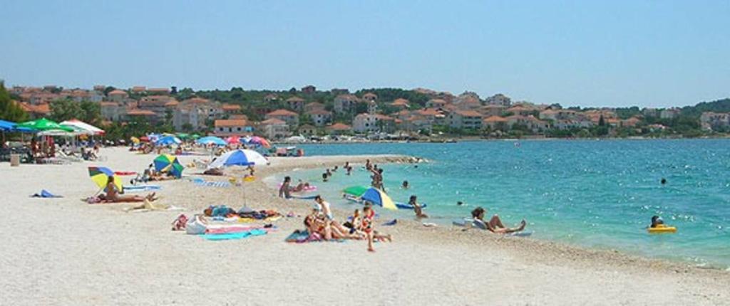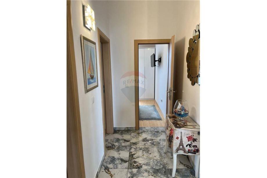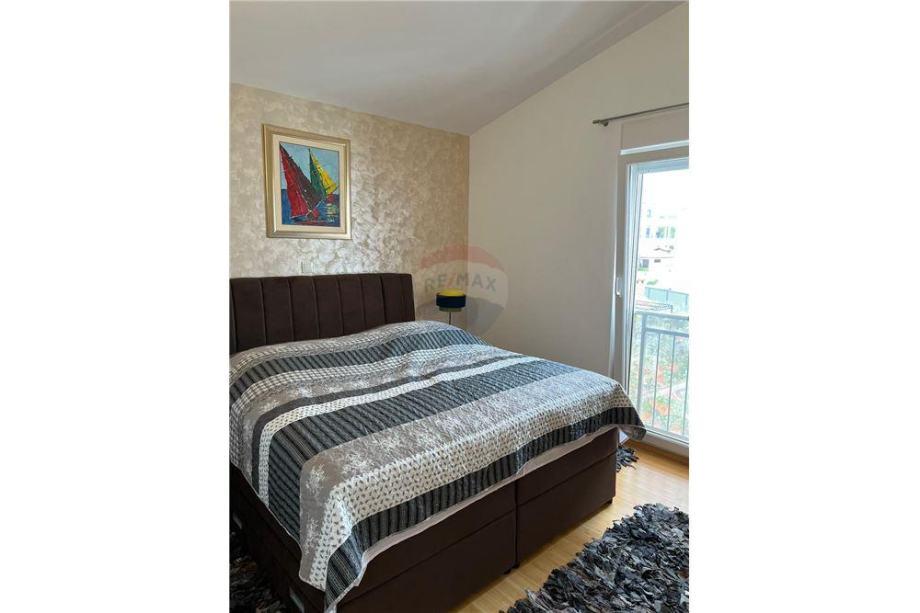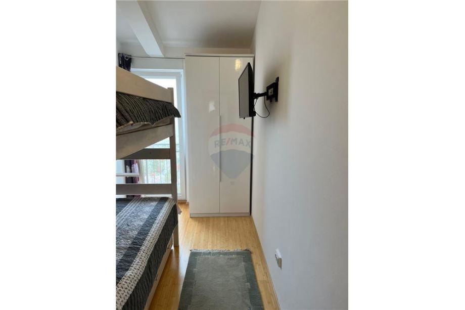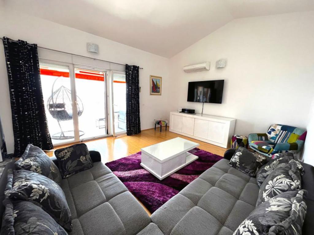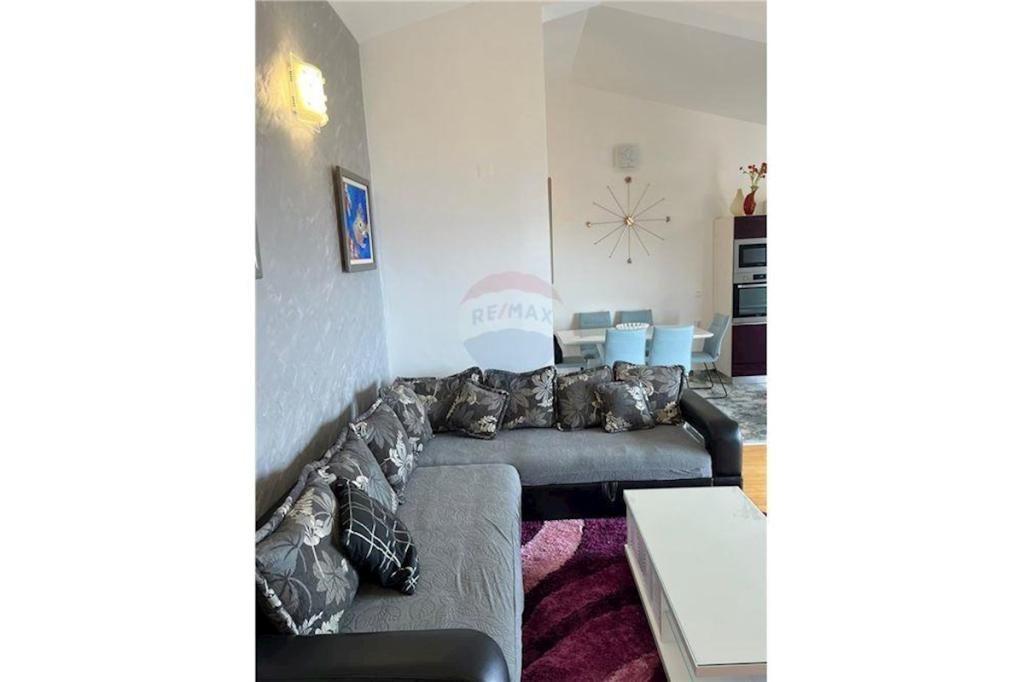 Sodoben penthouse navdušuje z elegantnim dizajnom in spektakularnim pogledom na otoke. Prostoren dnevni prostor vključuje sodobno in udobno pohištvo, klimatsko napravo in velik 190 cm TV, kar ustvarja prijetno okolje. Velike drsne stene ponujajo neverjeten panoramski pogled na otoke, ki prežemajo prostor z naravno svetlobo. Kuhinja je opremljena z najsodobnejšimi aparati, jedilnica je prostorna in omogoča uživanje v obrokih s čudovitim pogledom na morje. Ima tri udobne sobe, od katerih je vsaka opremljena z luksuzno posteljo, TV in klimatsko napravo za popolno udobje gostov. Kopalnica s kabino za prhanje poskrbi za razkošno sprostitev, ločeno stranišče pa dodatno udobje. Velik balkon z vrtno garnituro in gugalnico je idealen kraj za sprostitev in uživanje v sončnem vzhodu in zahodu s čudovitim pogledom na otoke. Ta apartma predstavlja kombinacijo modernega stila, udobja in neverjetne naravne lepote, ki zagotavlja nepozabno izkušnjo bivanja ob obali.