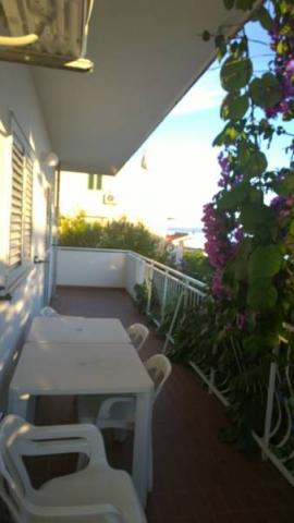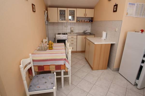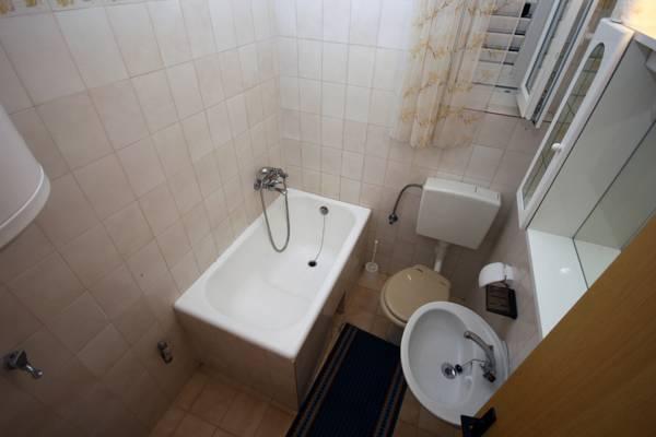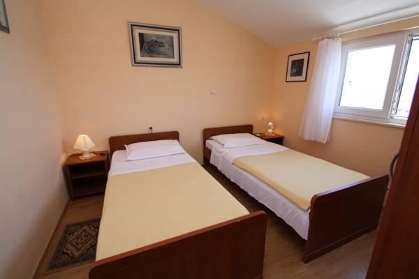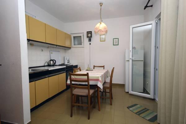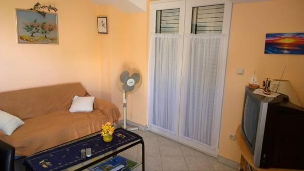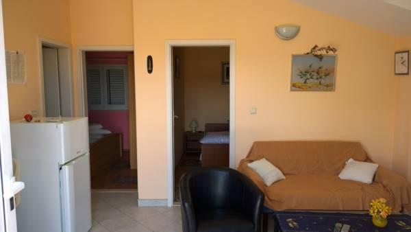 Tri-sobno stanovanje, ki se nahaja v 1. nadstropju. Sestavljen je iz dnevne sobe s kavčem, eno spalnico z zakonsko posteljo in spalnica z dvema ločenima ležiščema. Apartma ima kopalnico s kadjo in kuhinjo z vso opremo (pečica, 4 začela štedilnik, hladilnik, zamrzovalnik ..) Celotna dolžina apartmajev ima balkon z mizo in stoli s pogledom na morje. Brezžični internet je brezplačen.