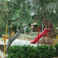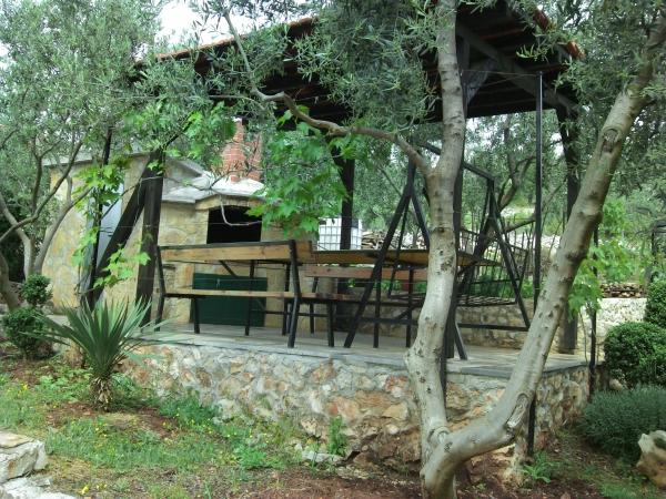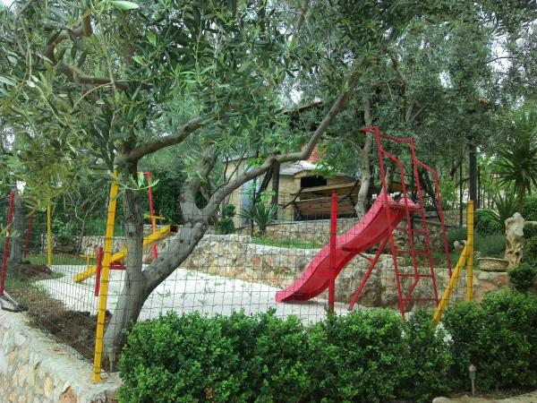 Za hišo je oljčni nasad, miza s klopi za 10 oseb z žarom in otroško igrišče.
