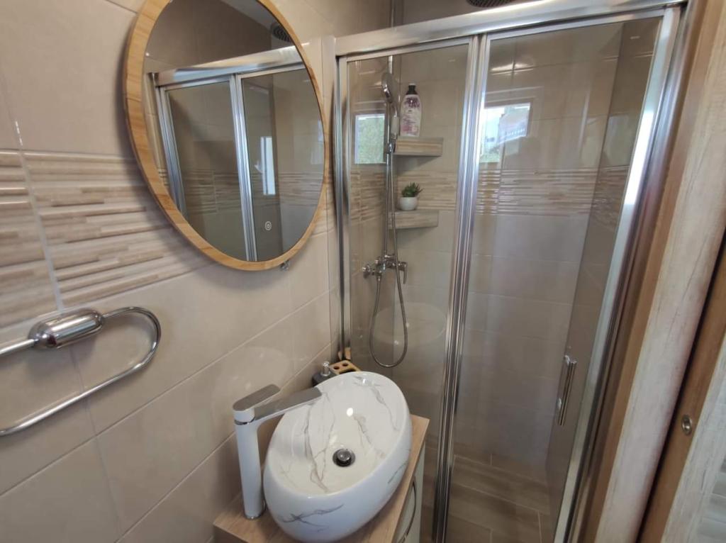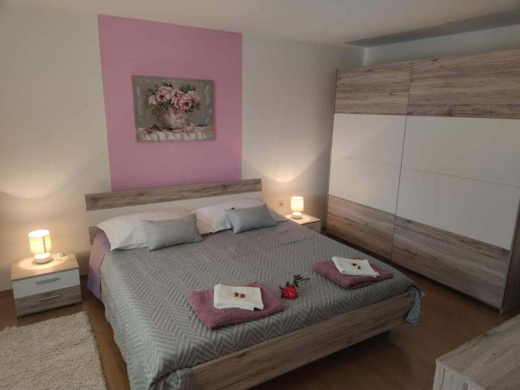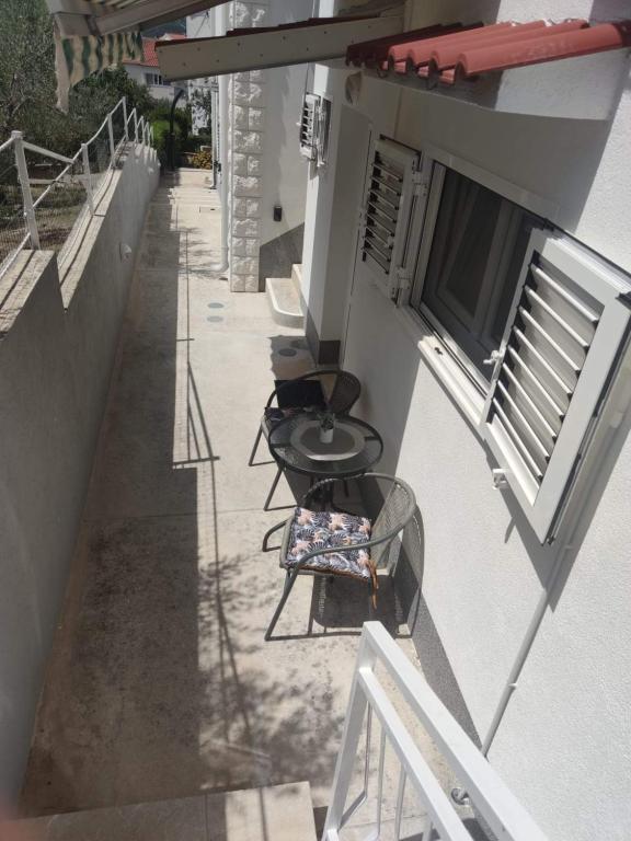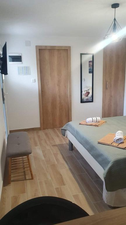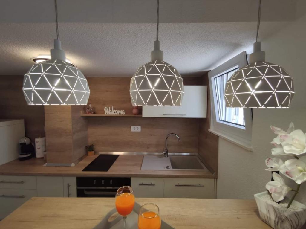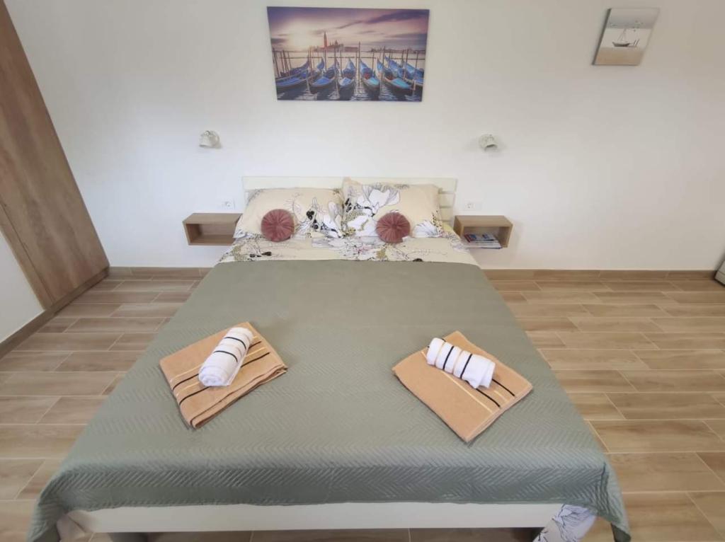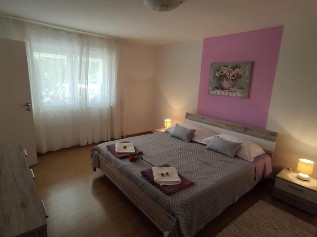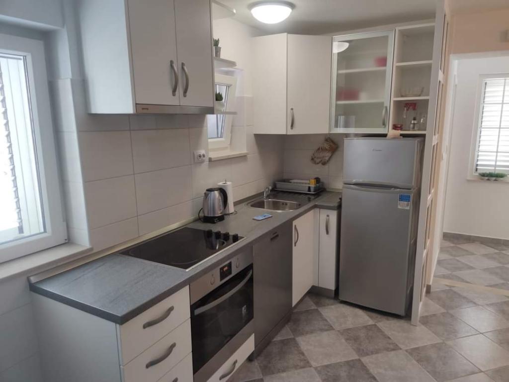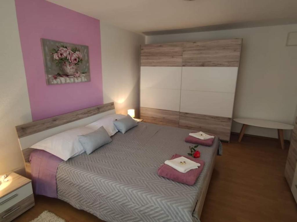 Apartmaji se nahajajo na mirni lokaciji, obdani z zelenjem, oddaljeni pa so 200 m ali manj kot 5 minut hoje. Studio app je za 2 osebi, s tem, da lahko manjši otrok uporablja tudi potovalno posteljico. Apartma 2+2 je idealen za družino z otroki do 10 let. Vse je na dosegu roke, zato ne potrebujete avta.