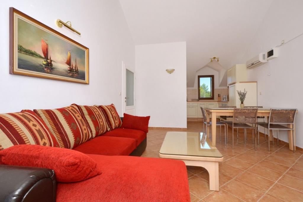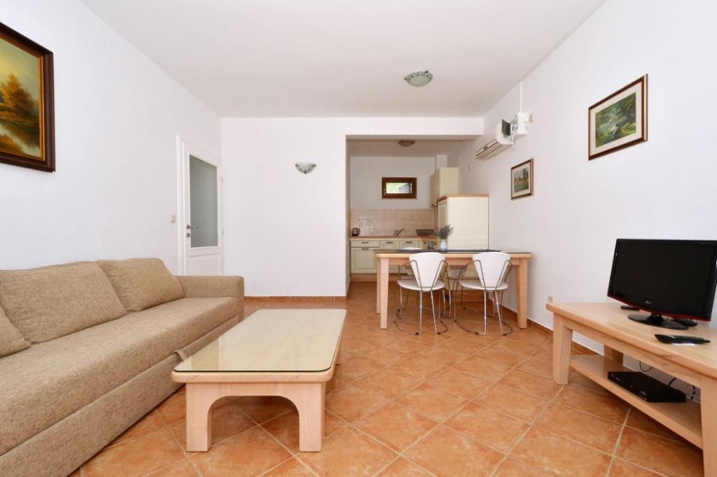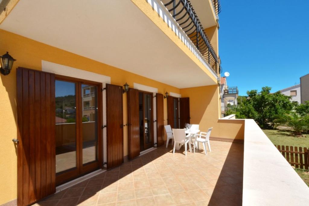 Popolnoma opremljeni apartmaji NAVI se nahajajo na otoku Čiovo, s pogledom na odprto morje, in le 200 m od prve prodnate plaže. Na plaži so gostinski objekti in akva park za otroke, kjer lahko najamete tudi pedaline ali deske za surfanje. Vsak apartma je sestavljen iz dveh spalnic, kopalnice, shrambe, kuhinje, dnevne sobe in terase. Apartmaji so popolnoma opremljeni z vsem, kar potrebujete za dopust. Apartma B1, ki se nahaja v pritličju, ima veliko teraso v izmeri 29 m2 in dostop do vrta. Na voljo imate tudi parkirišče (1 parkirno mesto na stanovanje) in neomejen dostop do interneta. Le 200 m so restavracije in drugi gostinski objekti, center, kjer se nahaja zdravnik, banka, pošta in tržnica, pa je od naše namestitve oddaljen le 400 m.