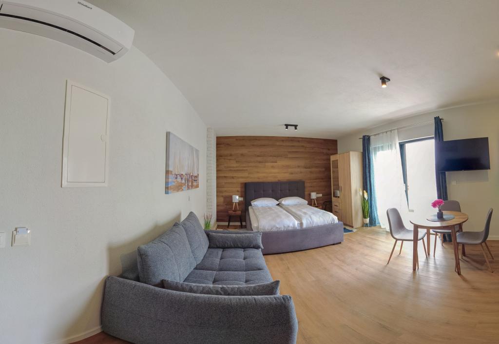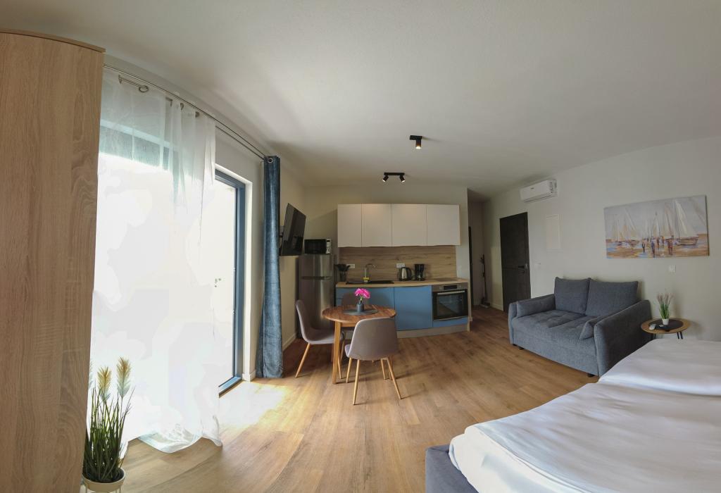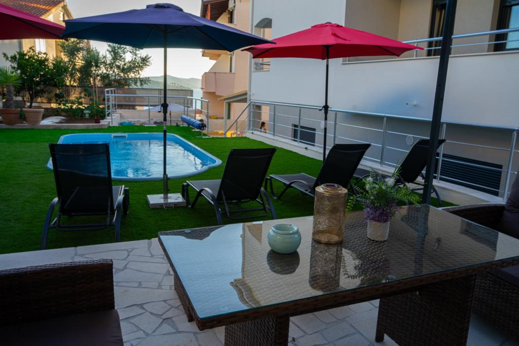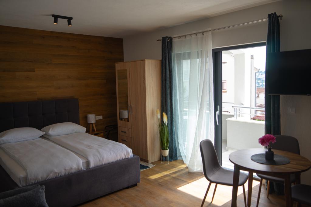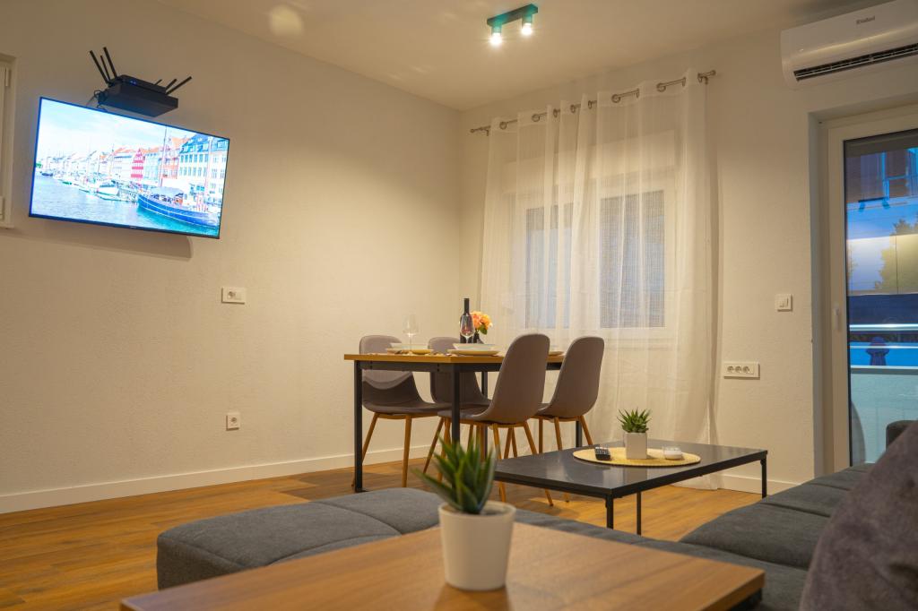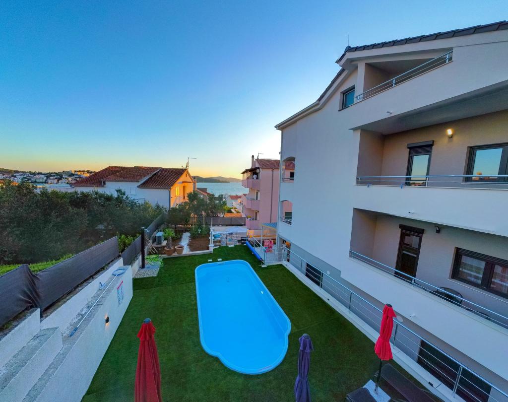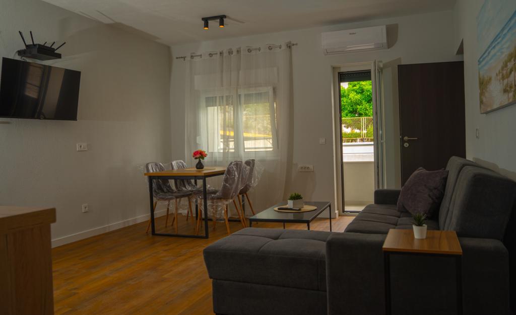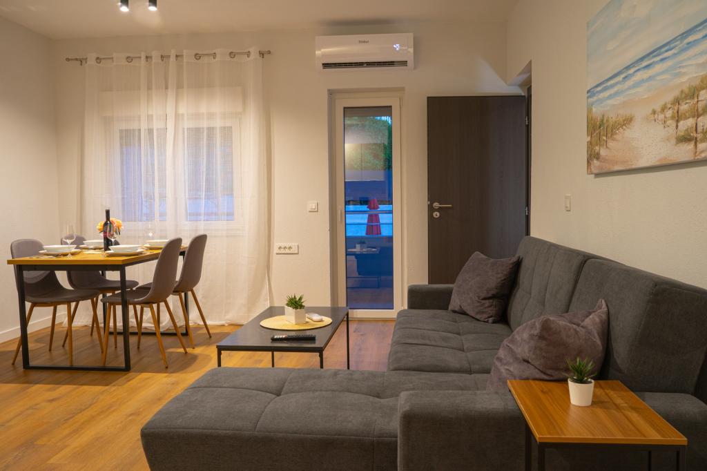Dobrodošli v Apartmajih Neli, apartmajih, ki se nahajajo na očarljivem otoku Čiovo, ki je s celino povezan z dvema mostovoma. Le 2,5 km od zgodovinskega mesta Trogir. Novo urejena stavba, popolnoma prenovljena leta 2023. Luksuzni, moderni na novo urejeni apartmaji. Sobe so udobne in elegantno opremljene, postelje so nove z ergonomskimi vzmetnicami. Kuhinje so popolnoma opremljene s sodobnimi aparati, vse imajo pomivalni stroj in vse, kar potrebujete za pripravo hrane. V vsaki kopalnici je pralni stroj. Vsak apartma ima balkon s pogledom na morje za prijetno sprostitev. Poleg tega so na voljo ogrevan bazen, ležalniki, solarni tuš, zunanji žar za pripravo nepozabnih dobrot, zasebno parkirišče pod video nadzorom. Plaža, restavracije in trgovine so oddaljene 200 metrov, 7 minut hoje. Apartmaji Neli vam ponujajo vse za udoben oddih in nepozabne spomine.